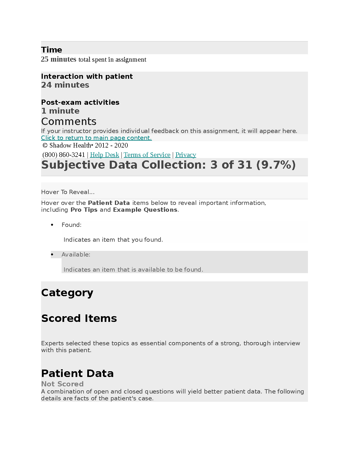 Shadow Health Case Study: Gabriel Martinez - Digital Clinical Experience Score