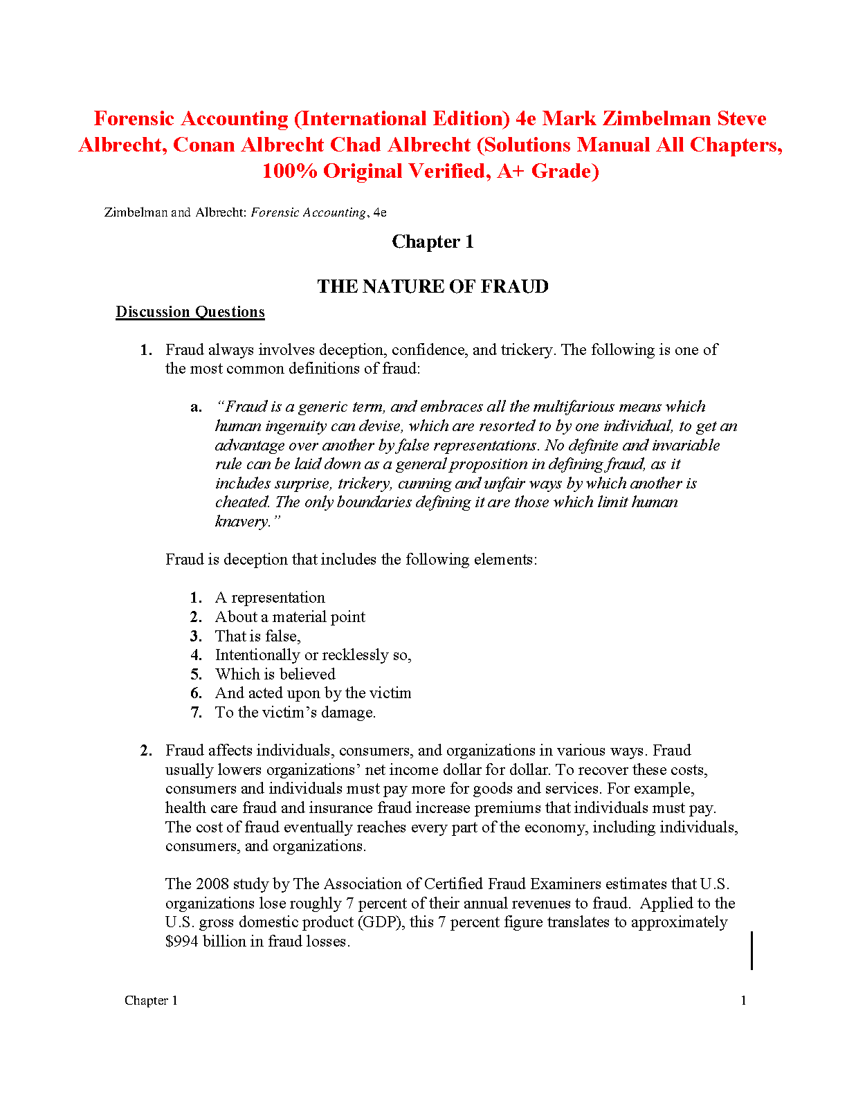Forensic Accounting (International Edition) 4e Mark Zimbelman Steve Albrecht, Conan Albrecht Chad Albrecht (Solutions Manual All Chapters, 100% Original Verified, A+ Grade)