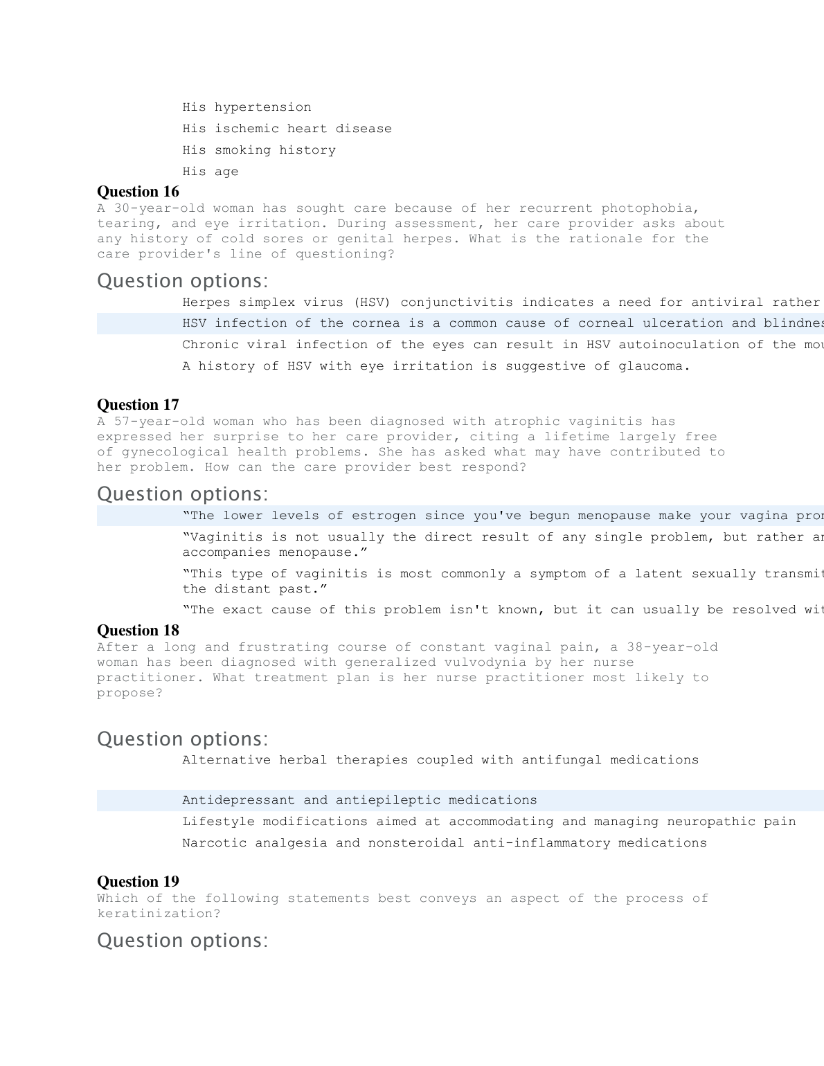 MN 551 / MN551 ADVANCED PATHOPHYSIOLOGY FINAL EXAM UPDATED 2023 $16.00 MN551 Advanced Pathophysiology Across The Lifespan UPDATED REVIEW QUESTIONS AND ANSWERS 2023 $16.00 MN 551 Unit 2 Quiz / MN551 Unit 2 Quiz / MN551 Week 2 Quiz / MN 551 Week 2 Quiz: Kaplan University $16.00 MN 551 Week 10 final Exam 2022/2023 – Kaplan University LATEST SOLUTION $16.00 MN 551 Unit 6 exam 2020 : Disorders of the Gastrointestinal and Genitourinary Systems in Primary Care – Kaplan University 2023 $16.00 MN 551 Quiz 1 latest 2020 – Kaplan University QUESTIONS AND ANSWERS BEST RATED $16.00 MN551 Quiz 5 Midterm (2020)_Advanced Physiology and Pathophysiology Across the Life Span - Kaplan University $16.00 MN551 Quiz 8 Fall 2020 Female Reproduction – Kaplan University $16.00 MN551 Unit 5 midterm Exam Version 2 Latest SOLUTION AND GUIDE 2023 $16.00 Unit 1 MN 551 Patho Questions And Answers 2022/2023 $16.00 MN 551 LATEST REVIEW RATED A+ 2023 $16.00 MN 551 Week 10 final Exam – Kaplan University BRAND NEW STUDY GUIDE FOR 2023/2024 $16.00 MN 551 Unit 6 NCLEX QUESTIONS WITH ANSWERS 100% CORRECT $16.00 MN 551 QUIZ LATEST SOLUTION WITH UPDATED ANSWERS $16.00 MN 551 Unit 6 exam : Disorders of the Gastrointestinal and Genitourinary Systems in Primary Care – Kaplan University RECENTLY UPDATED FOR 2023/2024 $16.00 MN551 Unit 9 Quiz Latest/ MN551 Unit 9 Quiz Latest GUIDE RATED A+ $16.00 MN551 Unit 5 midterm Exam Version 3 Latest SOLUTION GUARANTEED A+ $16.00 MN 551 Midterm Quiz latest – Kaplan University LATEST UPDATED FOR 2023 $16.00 MN551 Quiz 8 _Reproductive – Kaplan University GRADED A+ $16.00 MN 551 Week 7 Quiz WITH VERIFIED ANSWERS BRAND NEW!!! $16.00 MN551 week 10 FINAL EXAM GRADED A+ AND VERIFIED SOLUTION $16.00 MN551 Midterm exam-Advanced Physiology and Pathophysiology with 100% verified solutions 2023/2024 $16.00 MN 551 Final Exam Week 10 – Question and Answers SCORED 100% $16.00 MN 551 PATHO UNIT 8 QUESTIONS WITH CORRECT ANSWERS 2023/2024 $16.00 MN551 Unit 10 Final Exam Latest SOLUTION GRADED A+ $16.00 Kaplan MN551 Unit 4 Quiz BRAND NEW WITH VERIFIED ANSWERS 2023 $16.00 PATHO MN 551 UNIT 5 QUESTIONS WITH CORRECT ANSWERS GRADED A+ $16.00 MN 551 Advanced Pathophysiology Unit 8 Quiz RECENT UPDATE $16.00 MN551 – Quiz 7 Pathophysiology across the life span NEW UPDATE – Kaplan University $16.00 MN 551 Pharmacology Unit 7 Quiz GRADED AND RATED A+ $16.00 MN551 ADVANCED PHYSIOLOGY AND PATHOPHYSIOLOGY 1 MN551 Unit 4 Assignment Kaplan University BRAND NEW REVIEW $16.00 MN551 Unit 5 midterm Exam Version 4 REVIEW QUESTIONS AND ANSWERS $16.00 MN551 Unit 5 mid Term Exam Version 1 WITH VERIFIED ANSWERS 2023 $16.00 MN551 Quiz 8 Fall 2020 Female Reproduction – Kaplan University UPDATED FOR 2023/2024 A+ GRADED $16.00 MN551Unit 6: Disorders of the Gastrointestinal and Genitourinary Systems in Primary Care Exam 6 QUESTIONS AND ANSWERS 2023 $16.00 MN 551 Midterm Quiz LATEST UPDATED FOR 2023/2024 $16.00 MN 551 MIDTERM EXAM BRAND NEW EDITION 100% GUARANTEED SUCCESS $16.00 MN551 Quiz 2 QUESTIONS AND ANSWERS VERIFIED BY EXPERT. $16.00 MN551 Advanced Pathophysiology Across The Lifespan RATED A+ FOR 2023/2024 $16.00 MN551 ADVANCED PHYSIOLOGY AND PATHOPHYSIOLOGY MN551 Unit 5 Assignment Kaplan University $16.00 UNIT 1 MN 551 PATHO QUESTIONS WITH CORRECT ANSWERS GRADED A+ $16.00 MN551 unit 4 Quiz Latest/ MN551 unit 4 Quiz RECENT UPDATE FOR 2023 $16.00