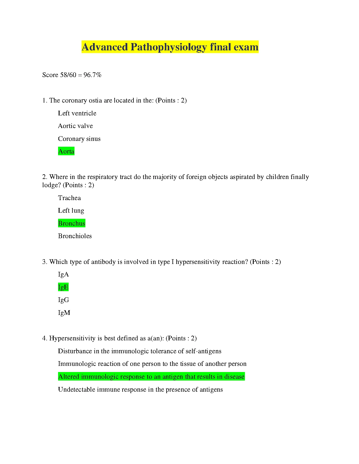 Advanced Pathophysiology final exam UPDATED WITH CORRECT ANSWERS