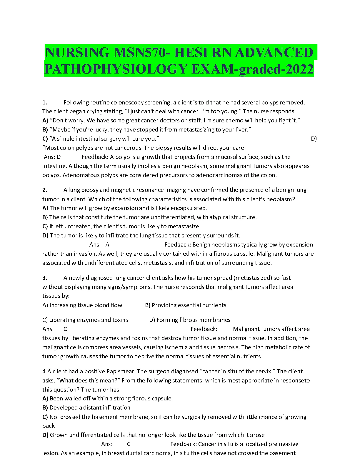 NURSING MSN570- HESI RN ADVANCED PATHOPHYSIOLOGY EXAM 100% CORRECT 2022/2023. DOWNLOAD on www.hackedexams.com INSTANTLY.