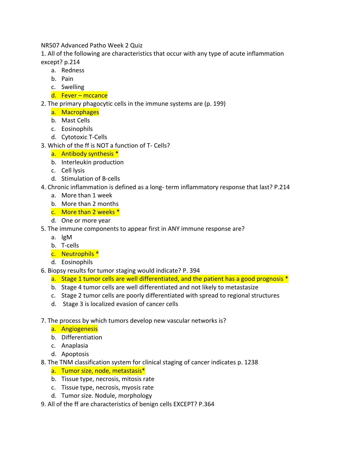 NR507 Advanced Patho Week 2 Quiz RATED 100% CORRECT 2023