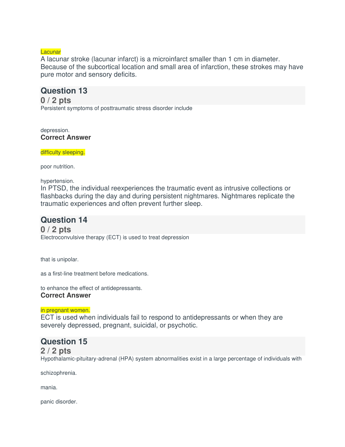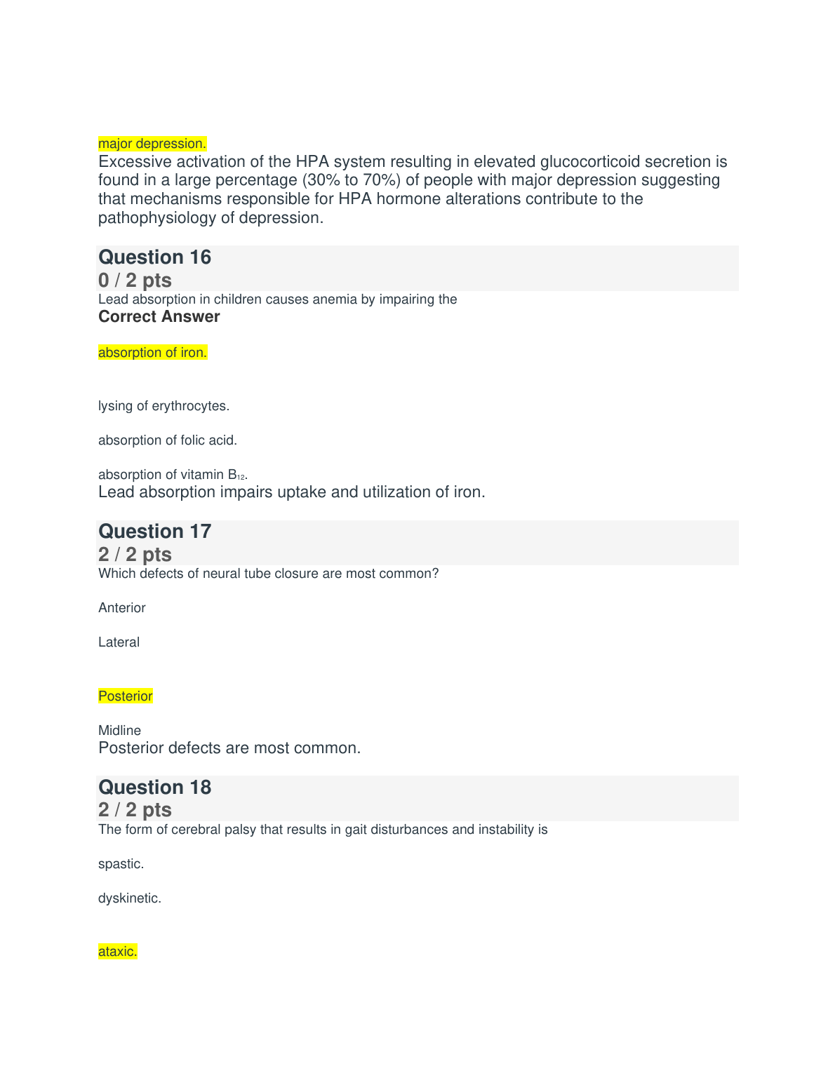 Advanced Pathophysiology Week 7 Quiz- Version 2 WITH CORRECT ANSWERS GRADED A+
