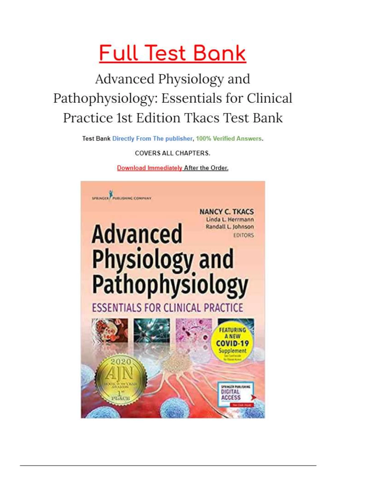 Advanced Physiology and Pathophysiology Essentials for Clinical Practice 1st Edition Tkacs Test Bank LATEST UPDATED 2023/2024. DOWNLOAD on www.hackedexams.com INSTANTLY.