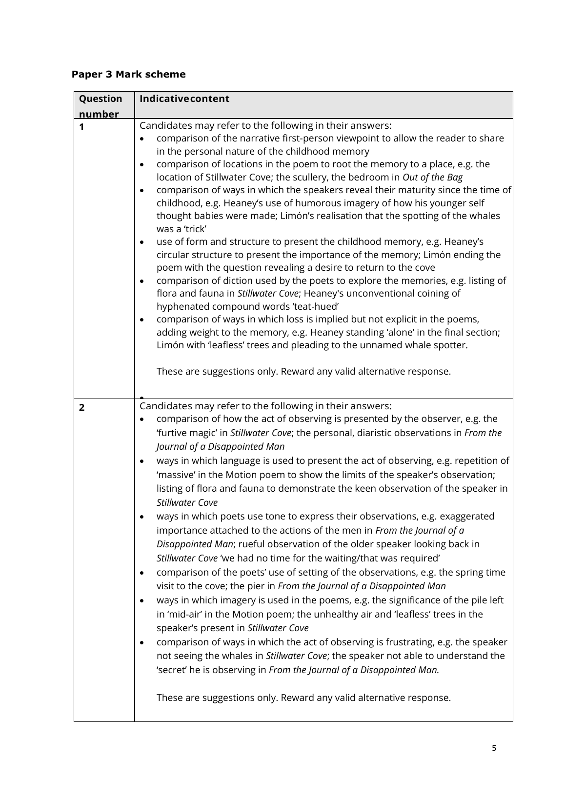 2024 PEARSON EDEXCEL A LEVEL ENGLISH LITERATURE MARK SCHEME PAPER 3 (9ET0/03: Poetry)