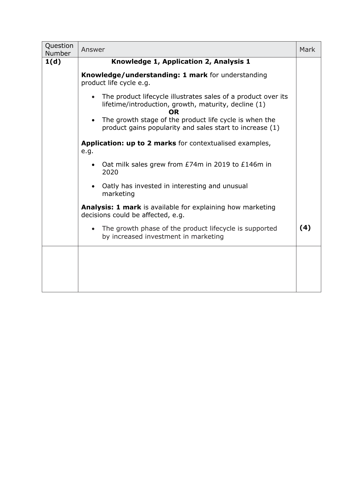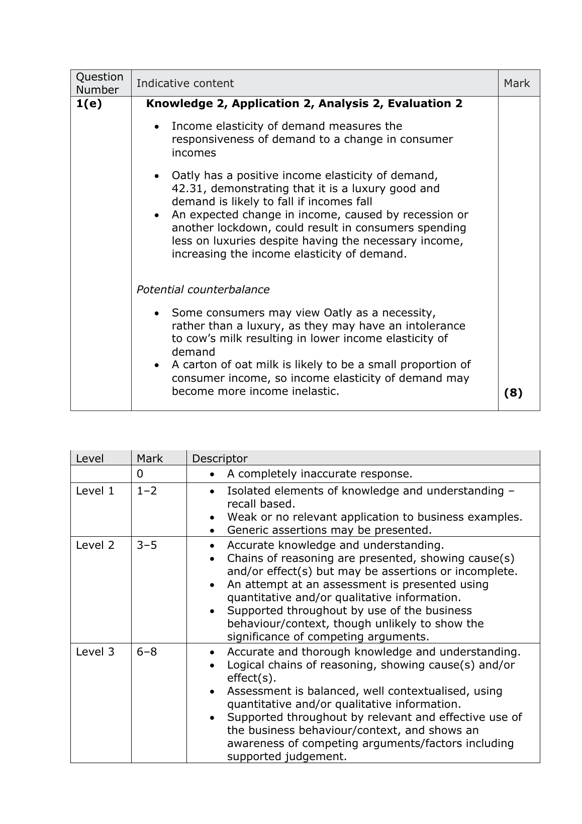 2024 PEARSON EDEXCEL LEVEL 3 GCE BUSINESS ADVANCED SUBSIDIARY PAPER 1 MARK SCHEME (8BS0/01: Marketing and People).