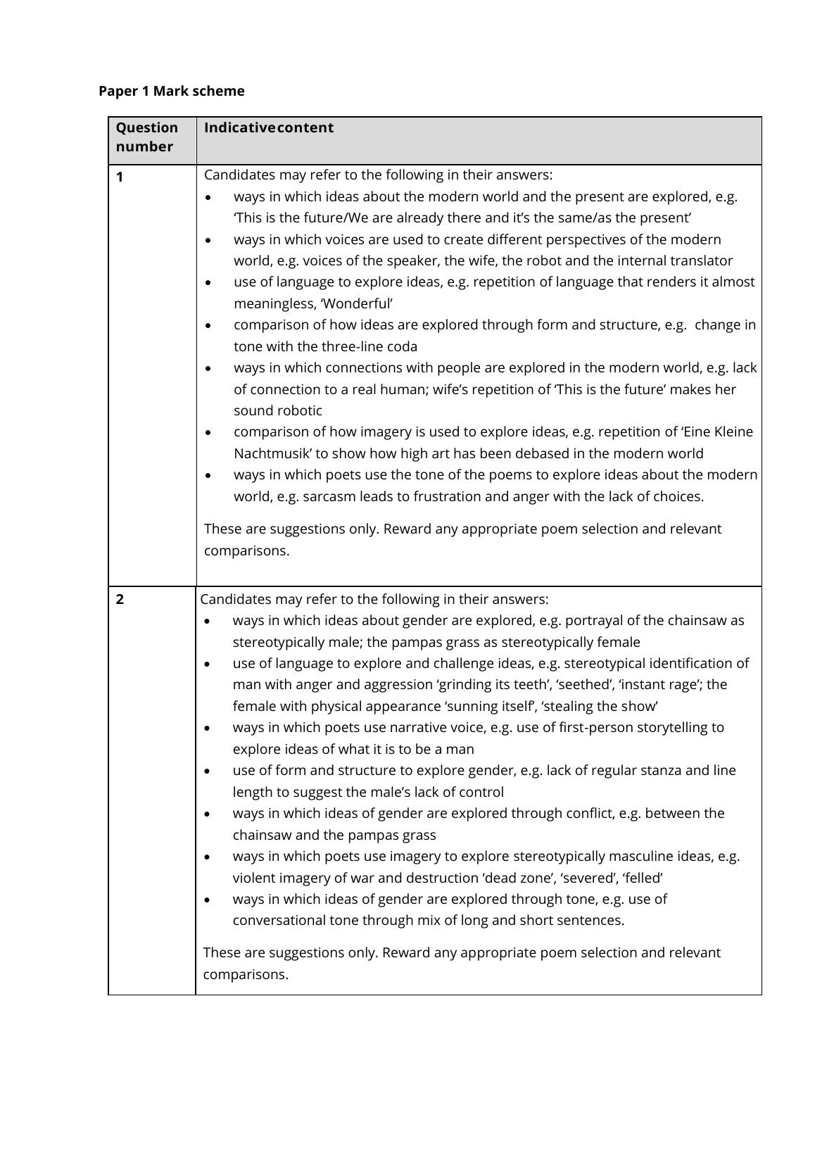 2024 PEARSON EDEXCEL LEVEL 3 GCE ENGLISH LITERATURE ADVANCED SUBSIDIARY PAPER 1 MARK SCHEME (8ET0/01: Poetry and Drama).