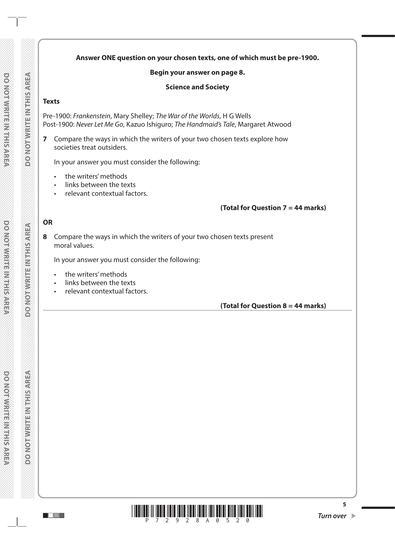 2024 PEARSON EDEXCEL LEVEL 3 GCE ENGLISH LITERATURE ADVANCED SUBSIDIARY PAPER 2 QUESTION PAPER (8ET0/02: Prose).