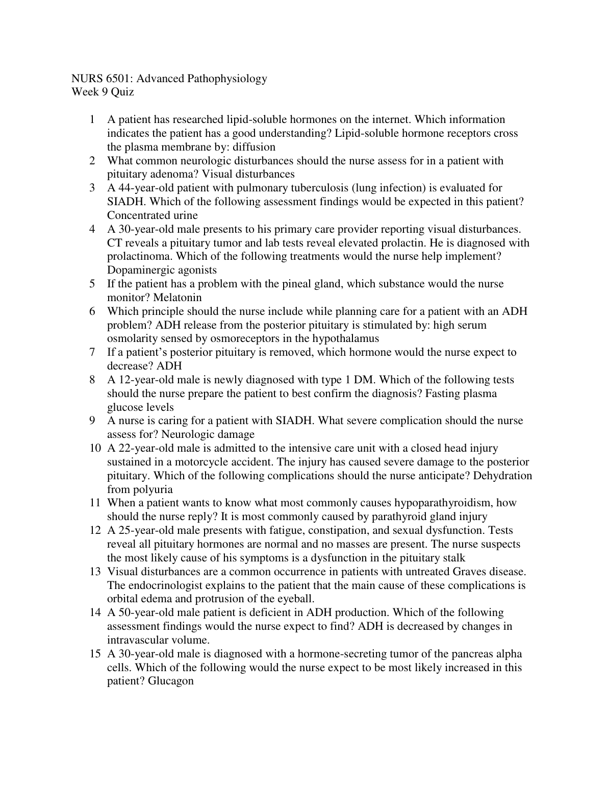 NURS 6501: Advanced Pathophysiology Week 9 QUESTIONS AND ANSWERS RATED A+. DOWNLOAD on www.hackedexams.com INSTANTLY.
