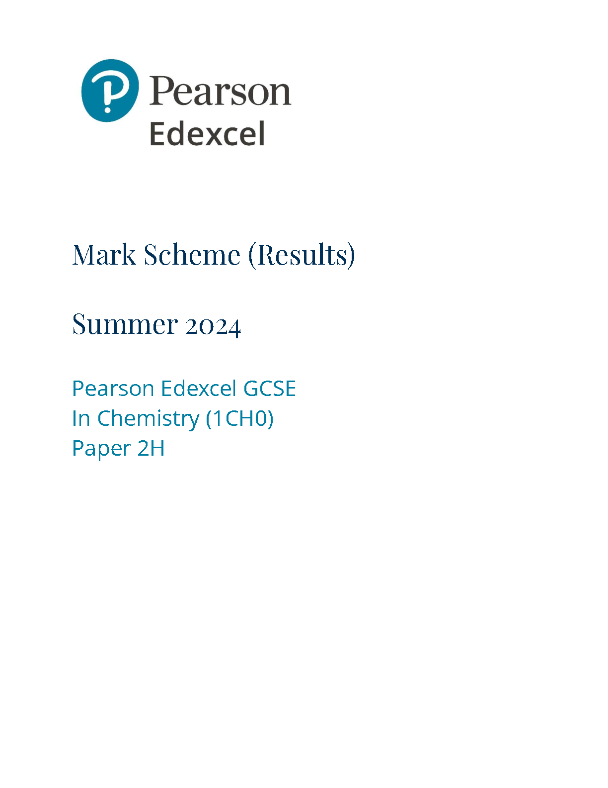2024 PEARSON EDEXCEL GCSE CHEMISTRY MARK SCHEME PAPER 2 (1CH0/2H: Higher Tier). DOWNLOAD THE OFFICIAL AND VERIFIED ON www.hackedexams.com