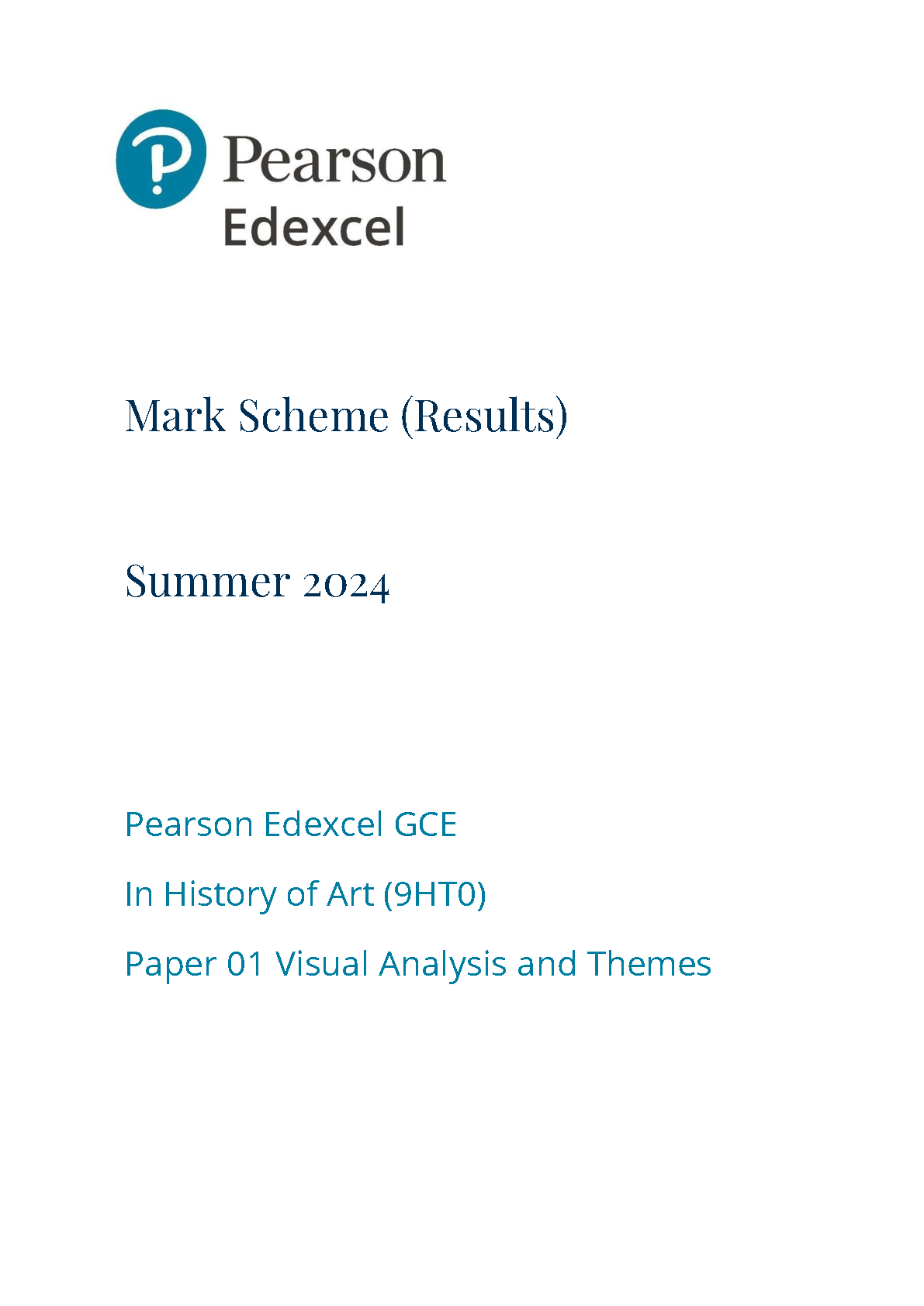 PEARSON EDEXCEL HISTORY OF ART ADVANCED MARK SCHME PAPER 1 2024 (9HT0/1:Visual Analysis and Themes).