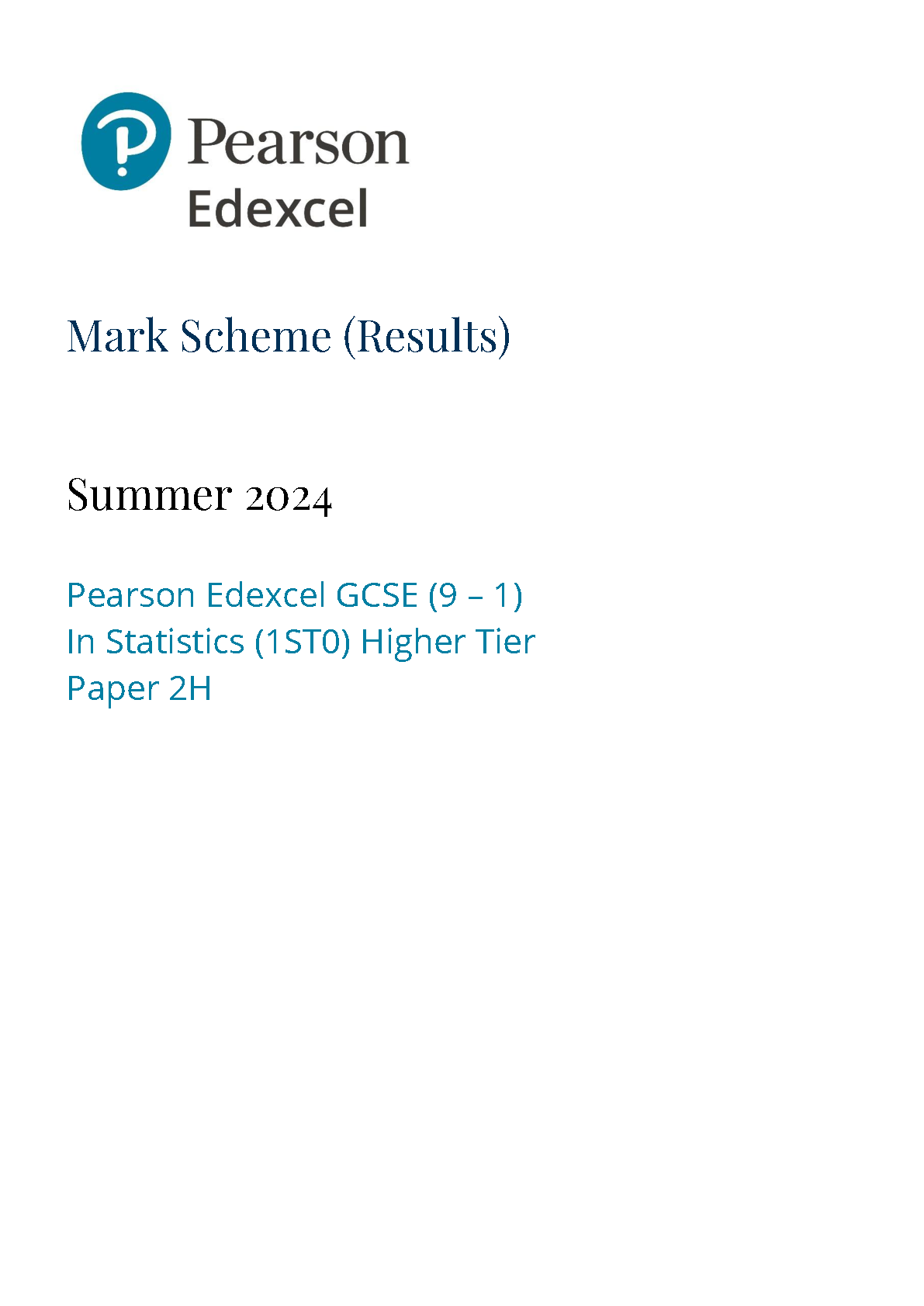 2024 PEARSON EDEXCEL GCSE STATISTICS MARK SCHEME PAPER 2 (1ST0/2H: Higher Tier).