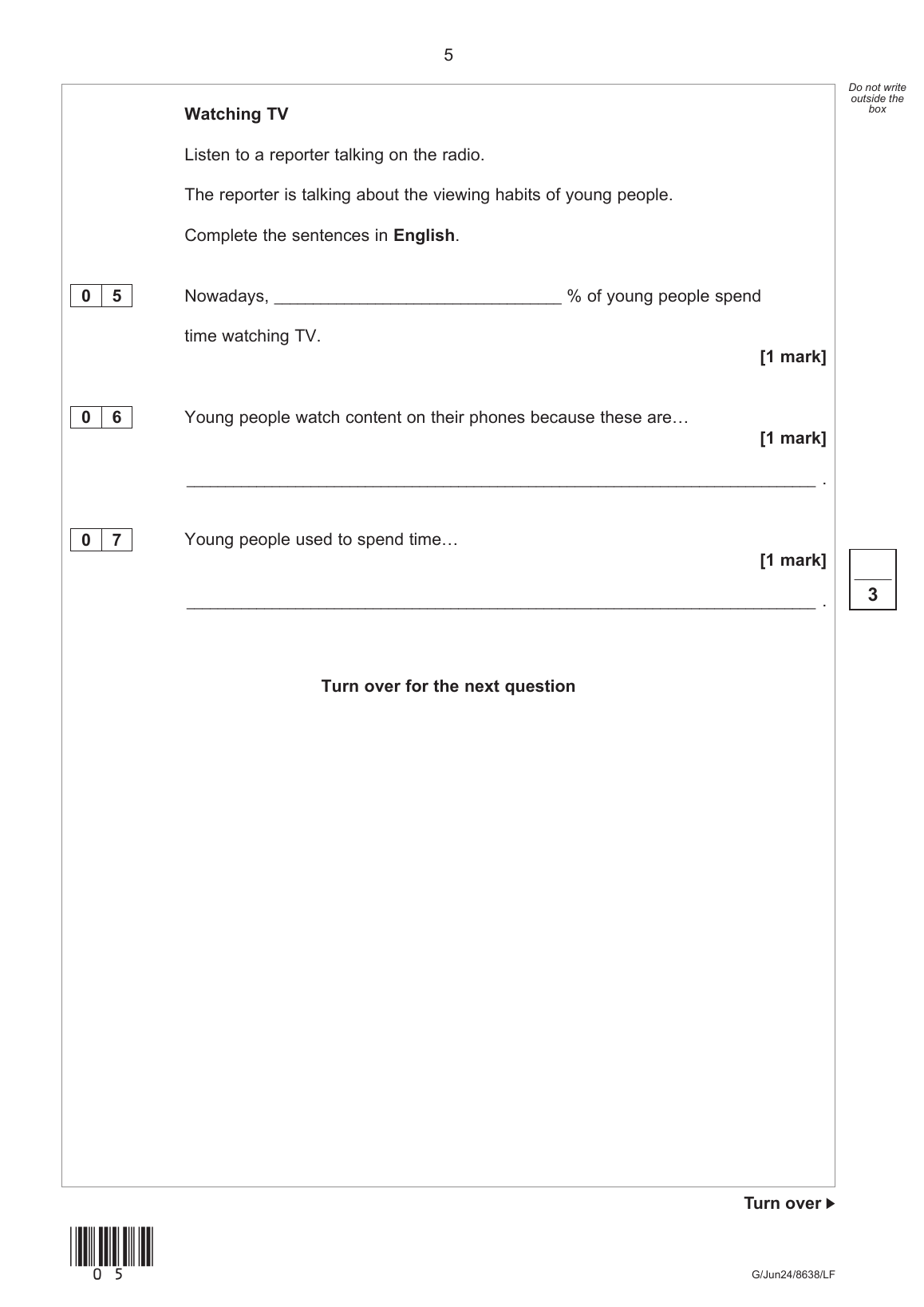 2024 AQA GCSE BENGALI QUESTION PAPER 1 (8638/LF: Foundation Tier Listening).