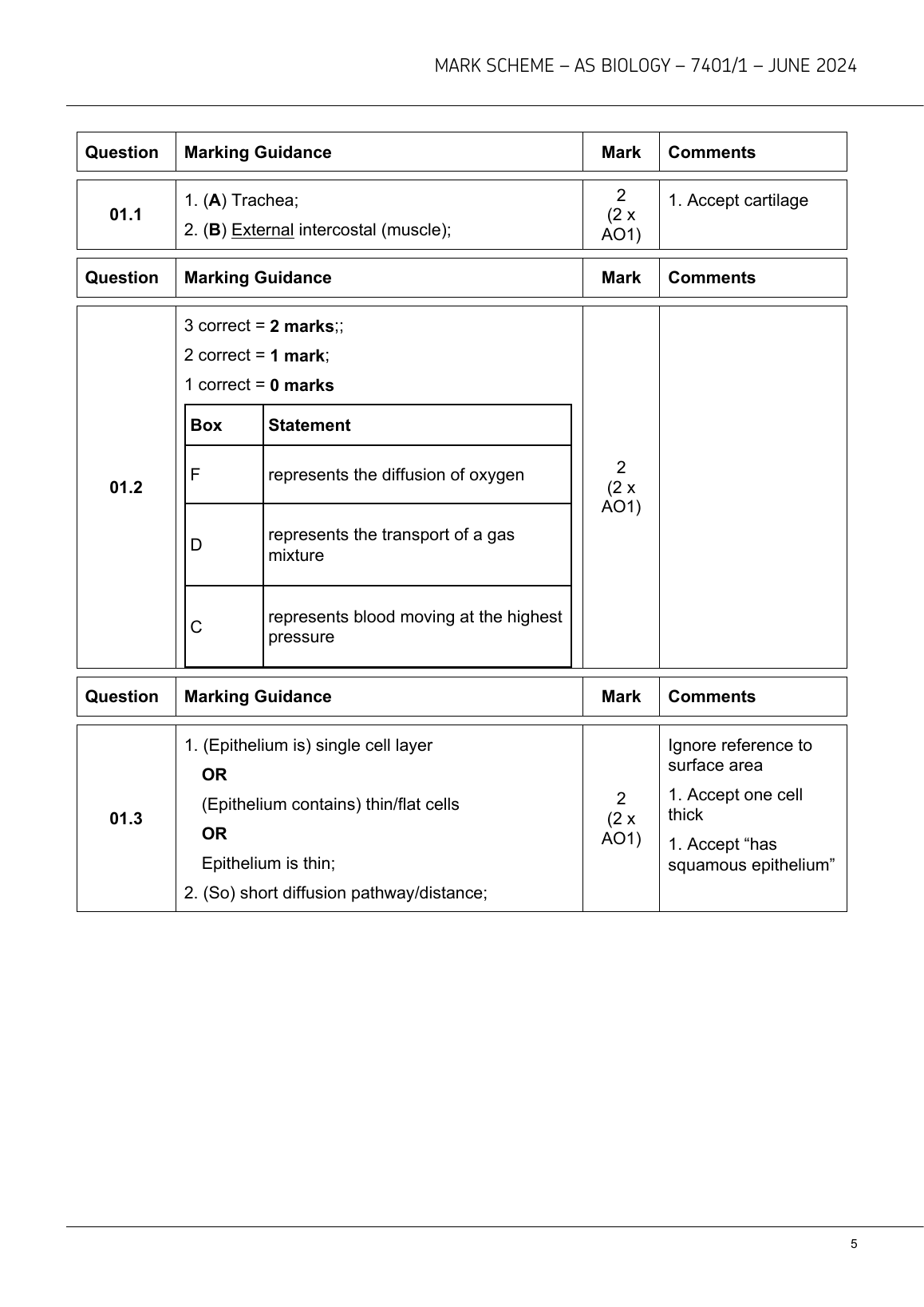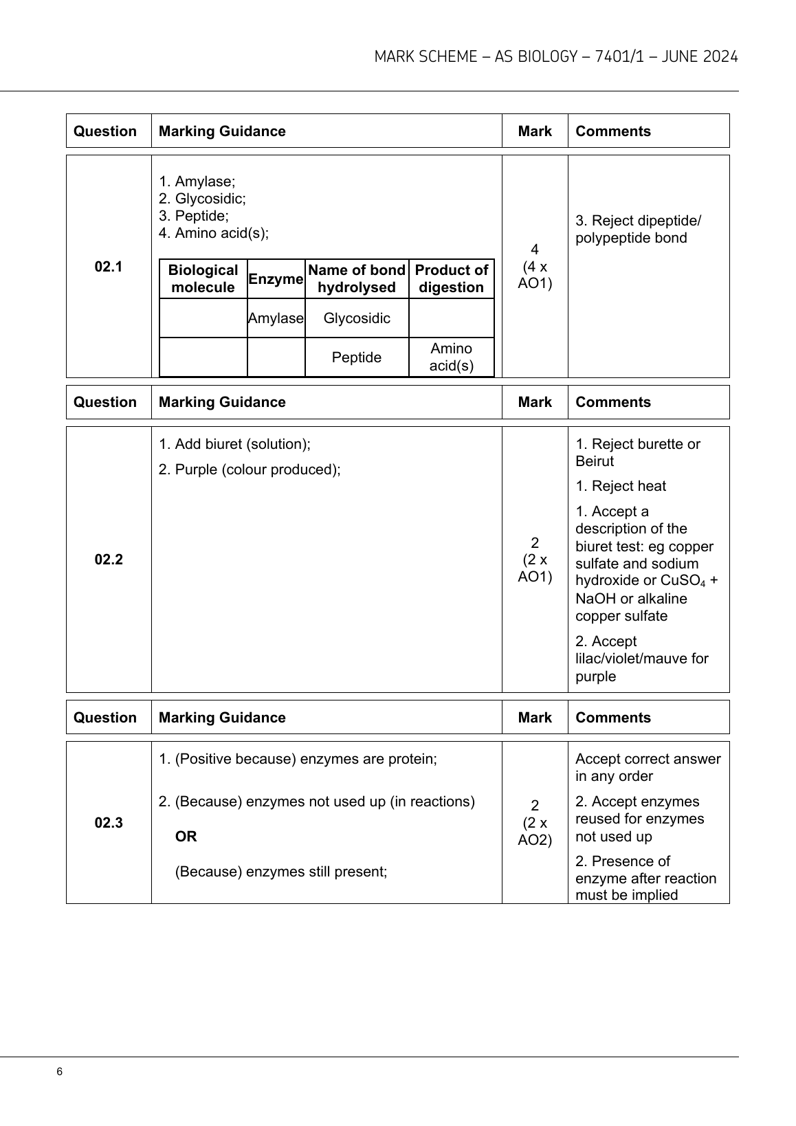 2024 AQA A LEVEL BIOLOGY PAPER 1 MARK SCHEME (7401/1)