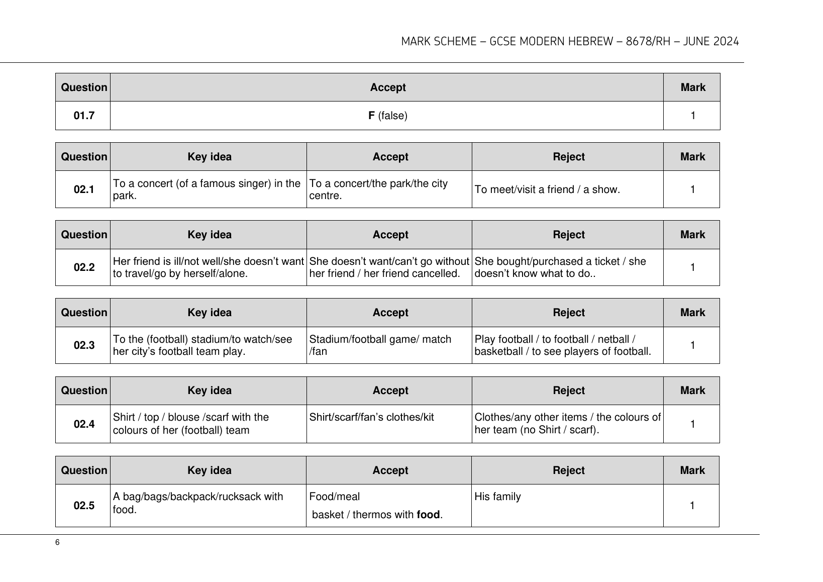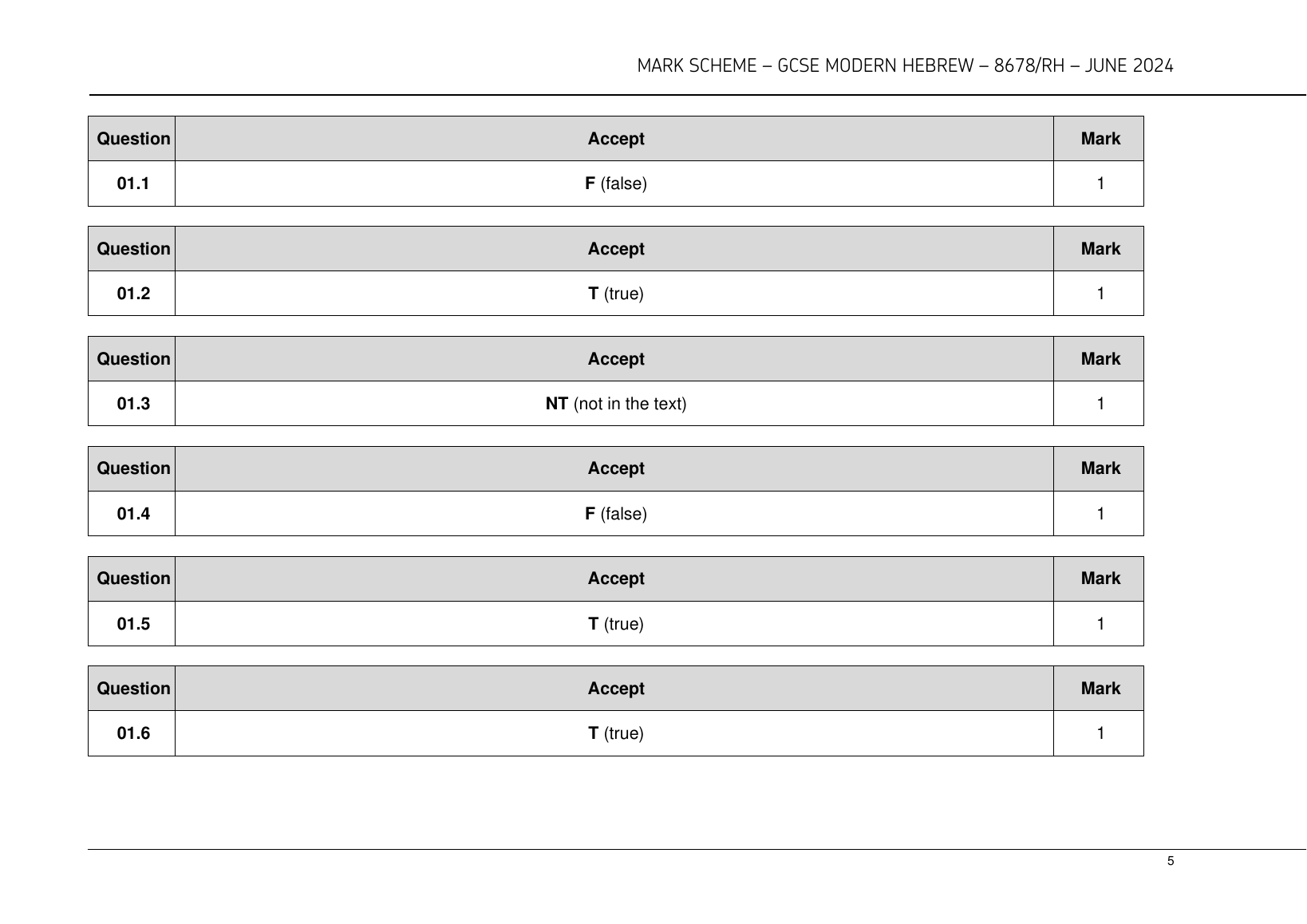 2024 AQA GCSE MODERN HEBREW MARK SCHEME PAPER 3 (8678/RH: Reading Higher Tier). DOWNLOAD THE OFFICIAL AND VERIFIED AQA GCSE MODERN HEBREW PAPER 3 2024 ON www.hackedexams.com