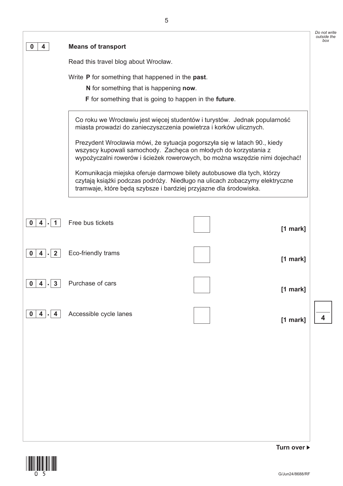 2024 AQA GCSE POLISH QUESTION PAPER 3 (8688/RF: Foundation Tier Reading).