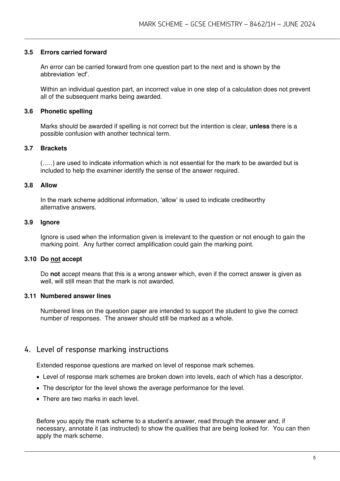 2024 AQA GCSE CHEMISTRY MARK SCHEME PAPER 1 (8462/1H: Higher Tier).