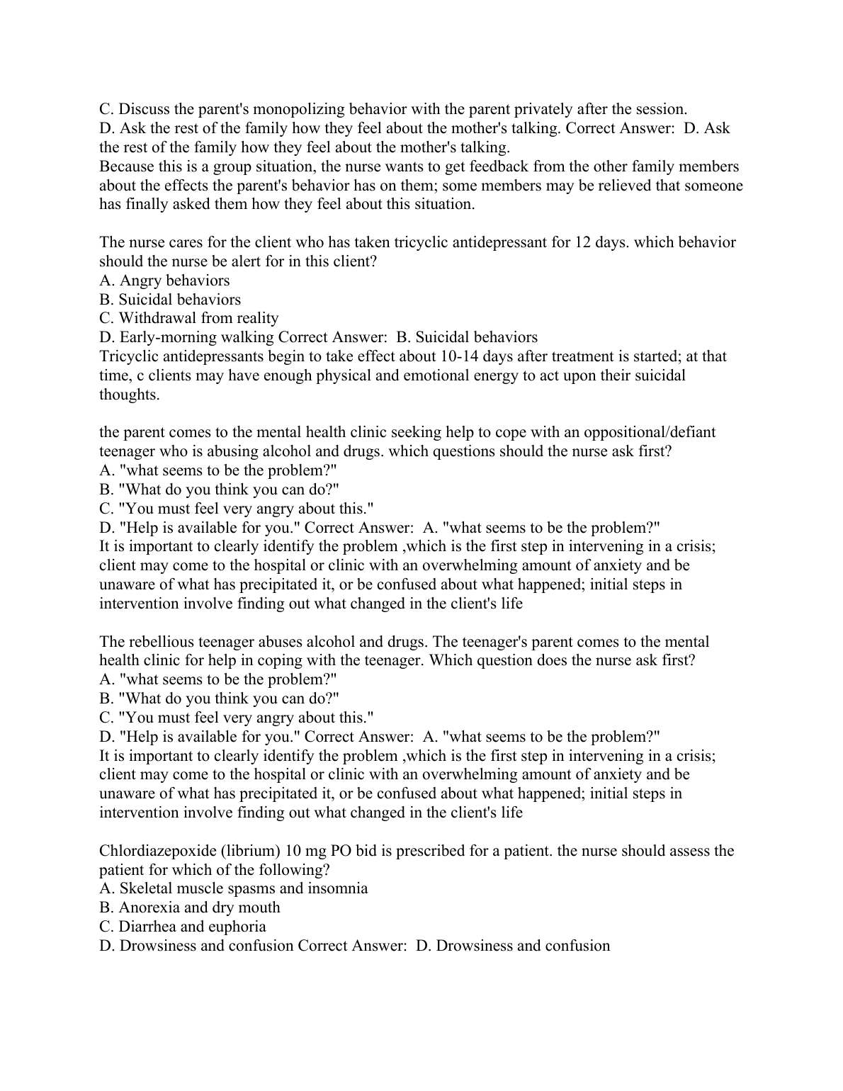 Kaplan psychiatric nursing C QUESTIONS AND ANSWERS ALL CORRECT(with explanations) MOST RECENT SOLUTION RATED A+