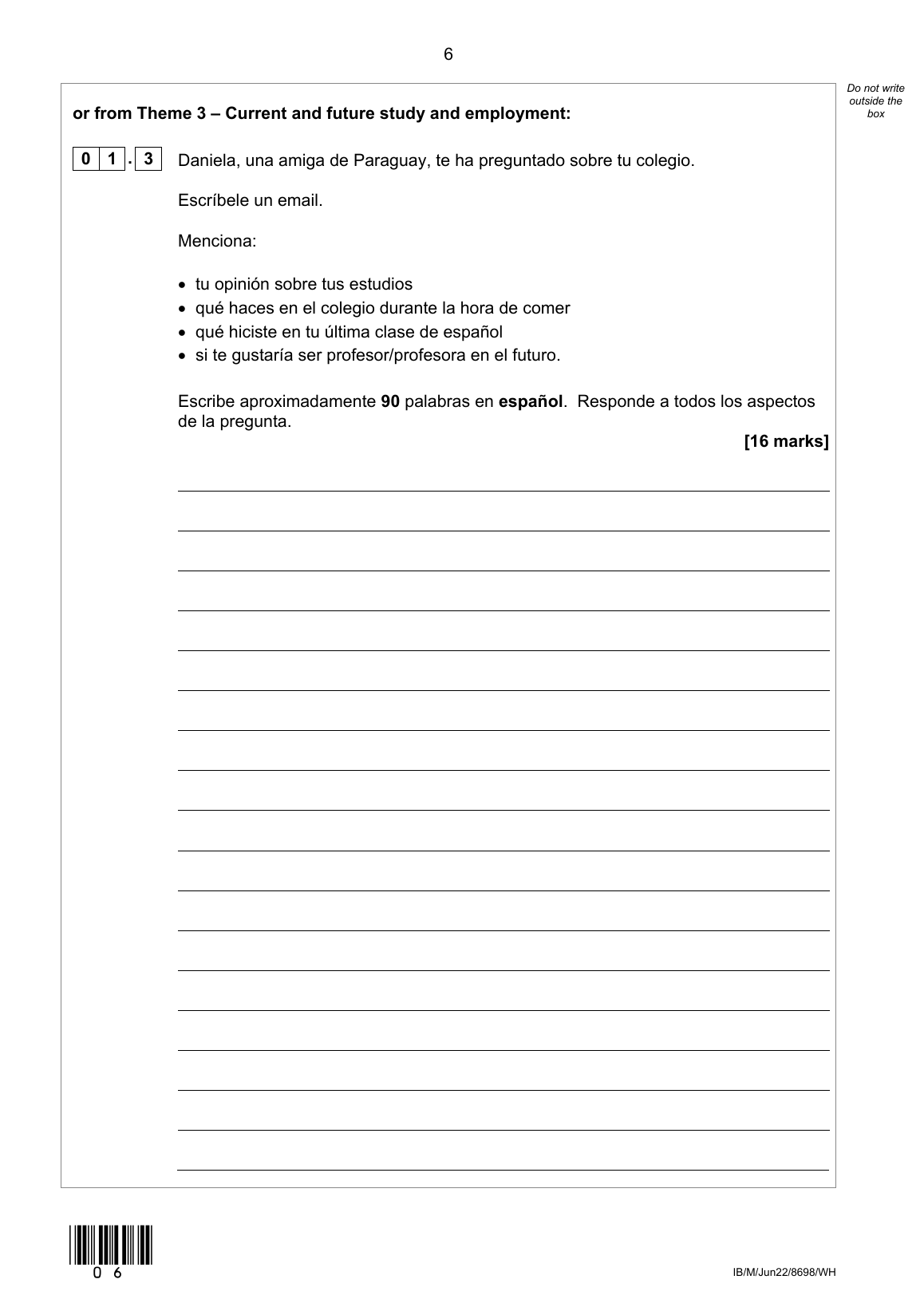 AQA GCSE SPANISH PAPER 4 JUNE 2022 QUESTION PAPER (8698/WH: Higher Tier - Writing)