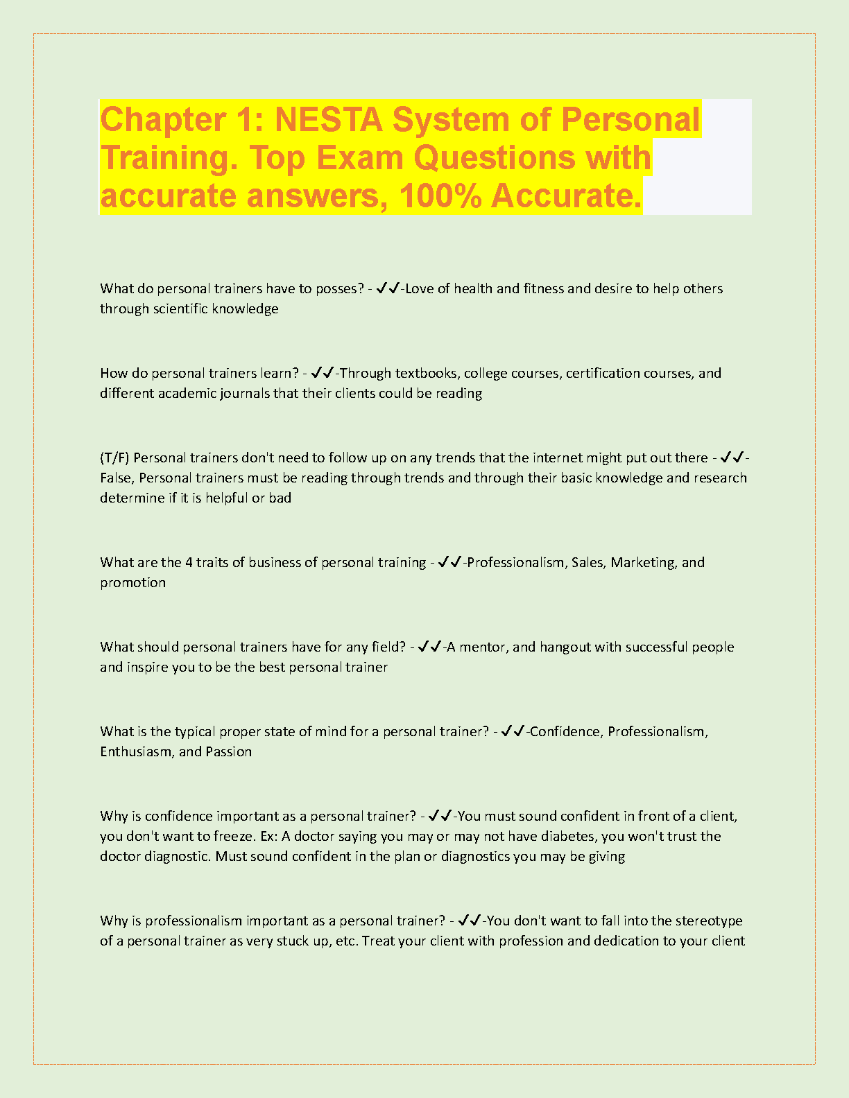 NESTA System of Personal Training: Top Exam Questions with Accurate Answers, 100% Accurate - Latest 2024/2025 Edition