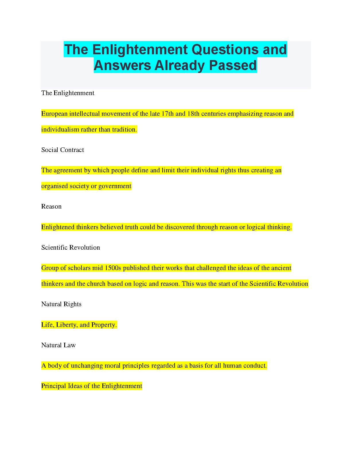 The Enlightenment Questions and Answers Already Passed - 2024/2025 Edition - Ace Your Exams on the First Try