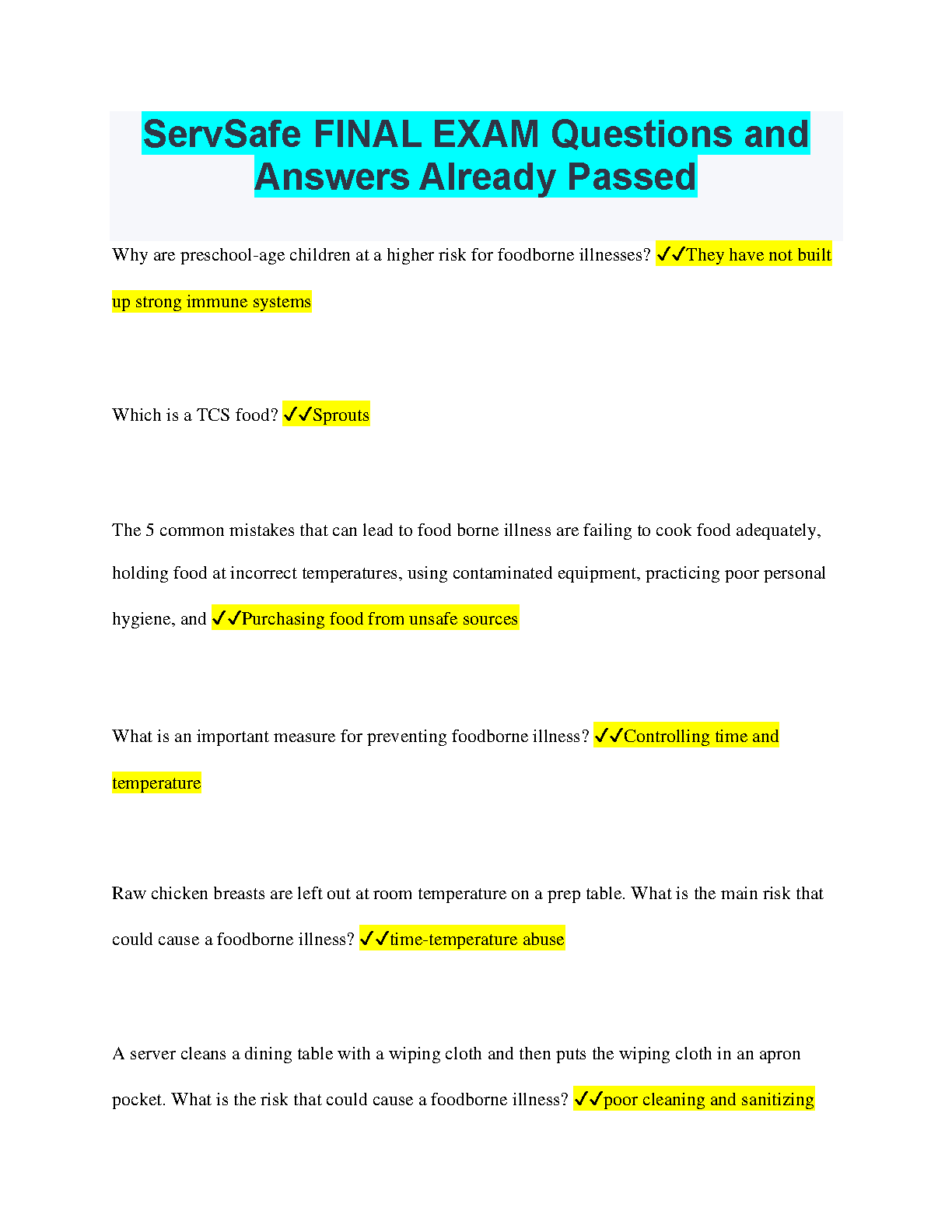 ServSafe Final Exam Questions and Answers: Ace Your Exam on the First Attempt (2024/2025 Edition)