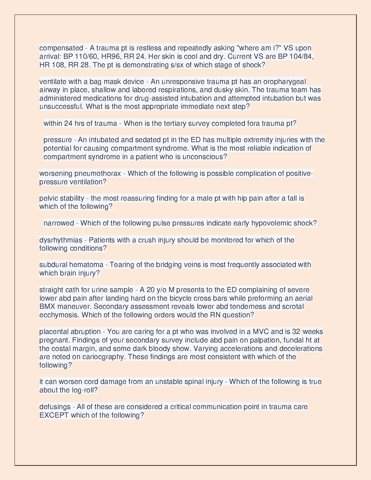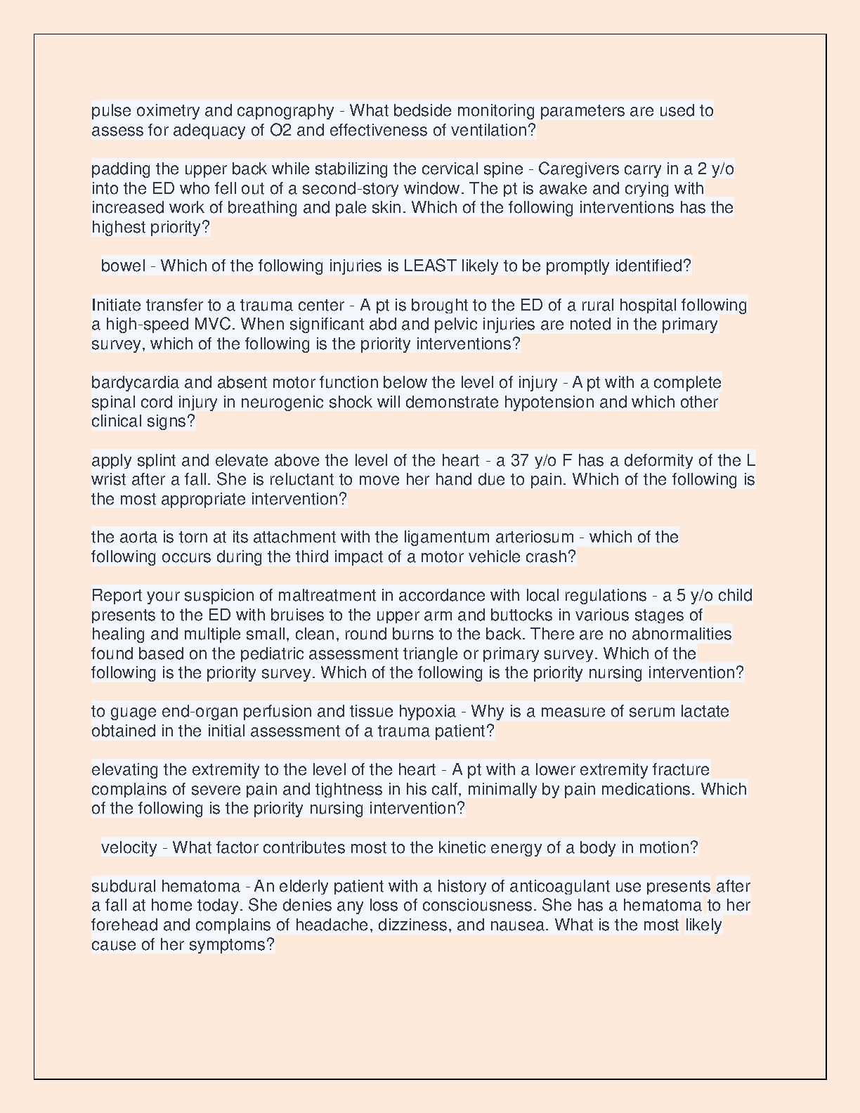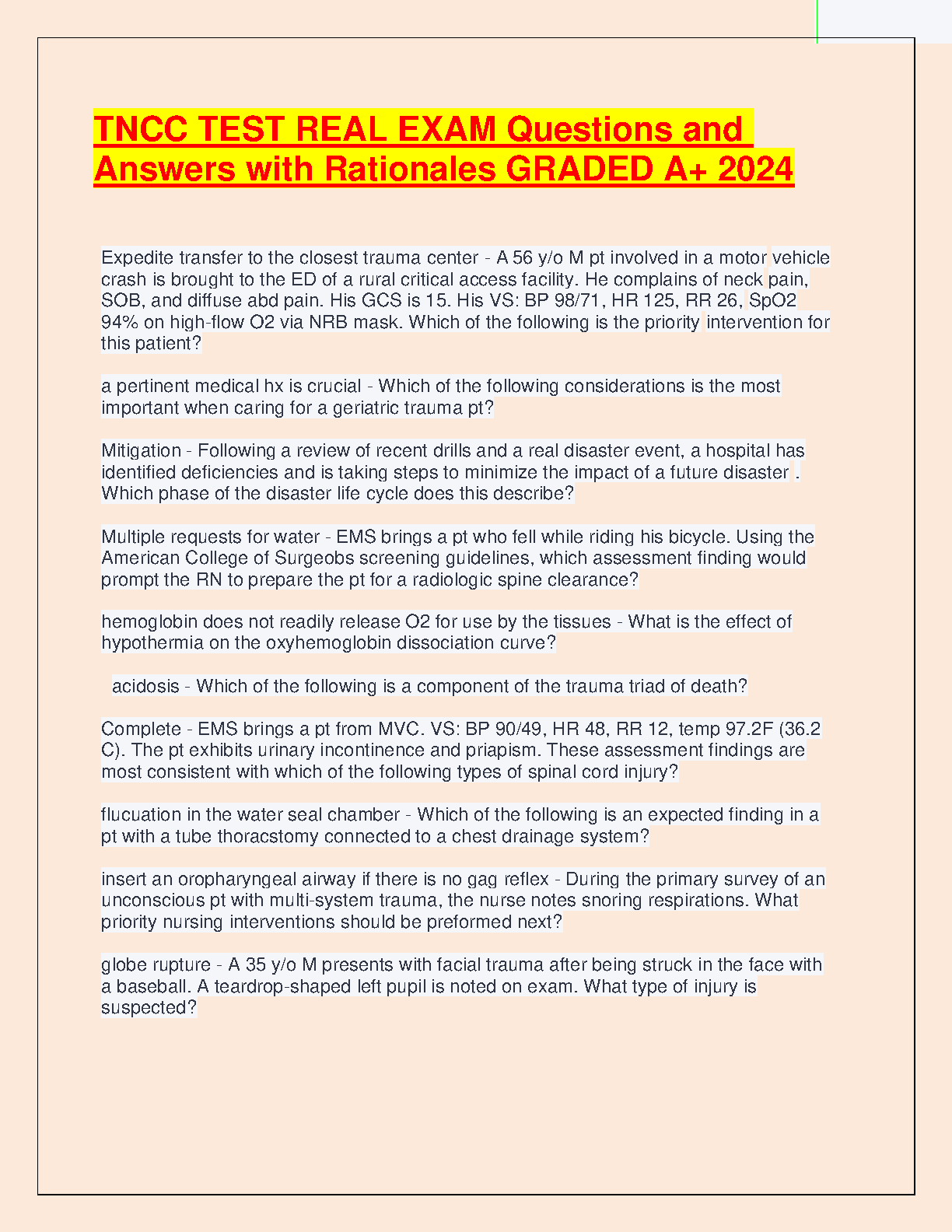 TNCC Test Real Exam Questions and Answers with Rationales GRADED A+ 2024 by American College of Surgeons, Emergency Nurses Association, and National Association of Emergency Medical Technicians