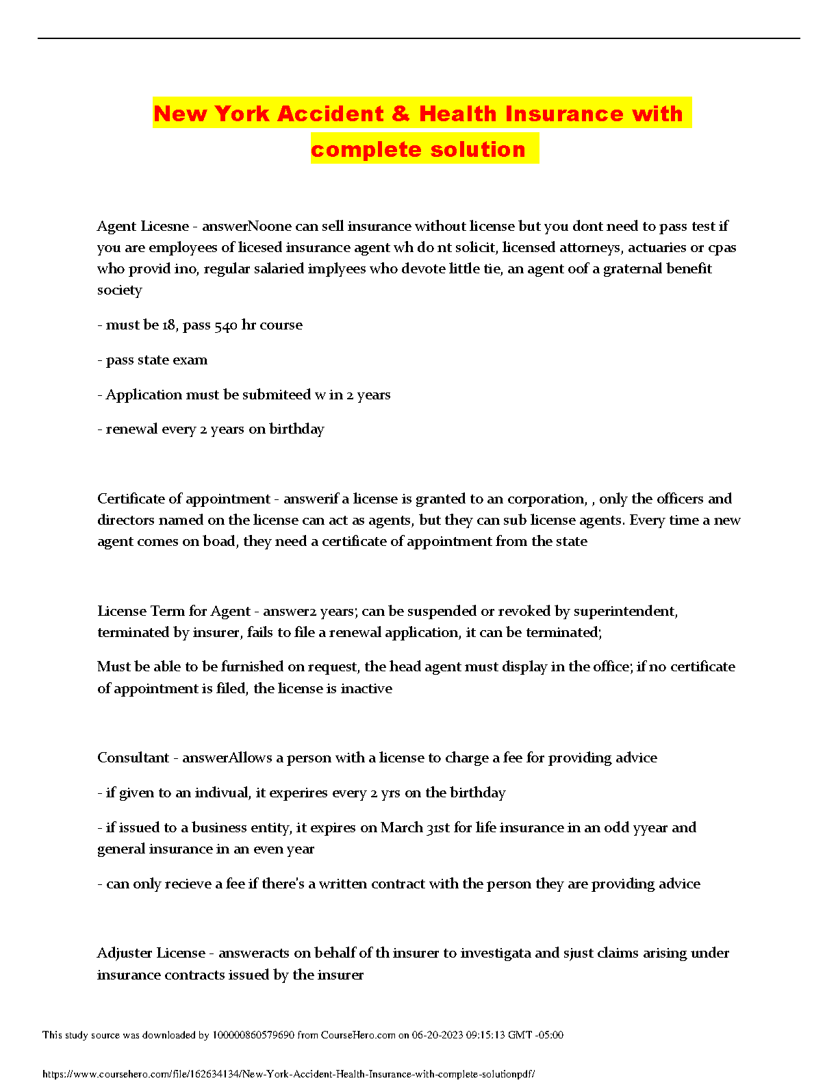 This resource covers the essential aspects of Accident and Health insurance in New York, providing comprehensive guidance on licensing requirements, agent terms, consultant roles, adjuster responsibilities, and more. It includes detailed information about the necessary qualifications, renewal procedures, and the specific regulations surrounding this type of insurance. This study guide is designed to help students and professionals master the complexities of Accident and Health insurance in New York.
