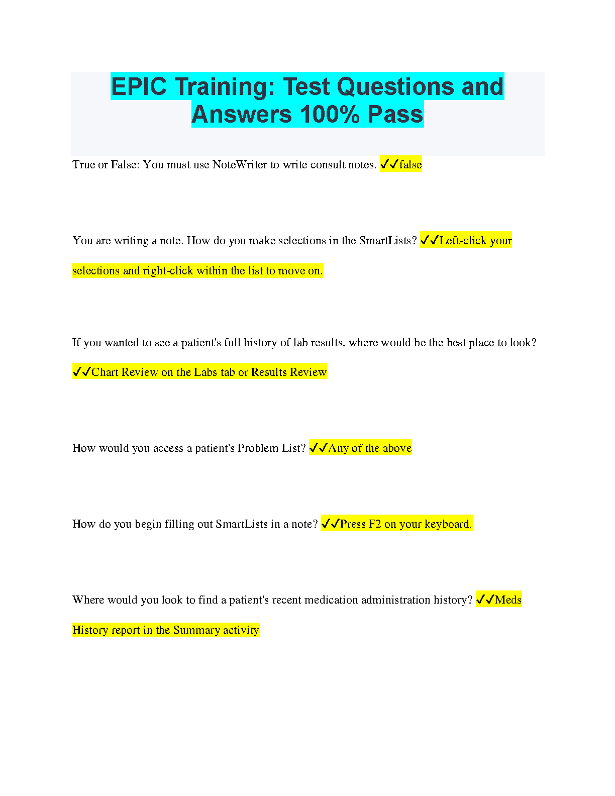 Ace your Epic training with these comprehensive test questions and answers. Get 100% pass guaranteed.