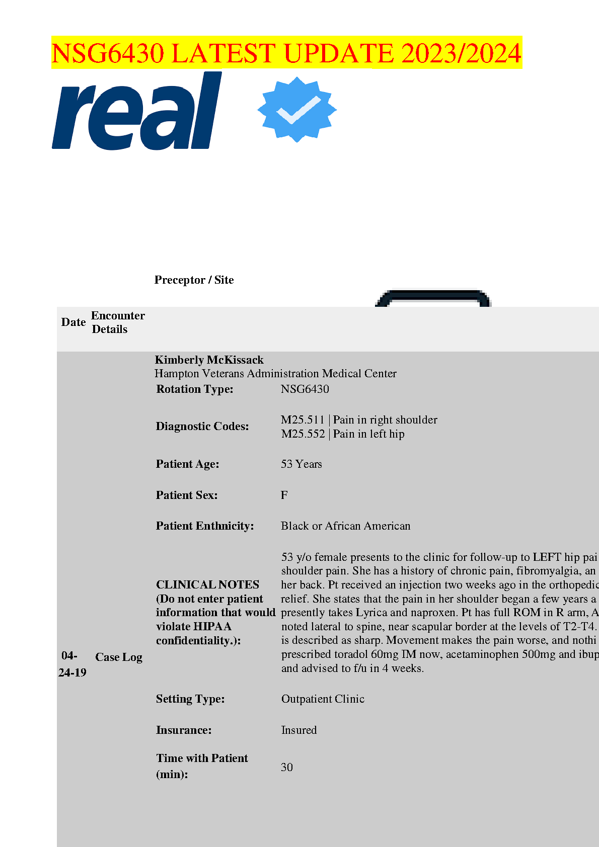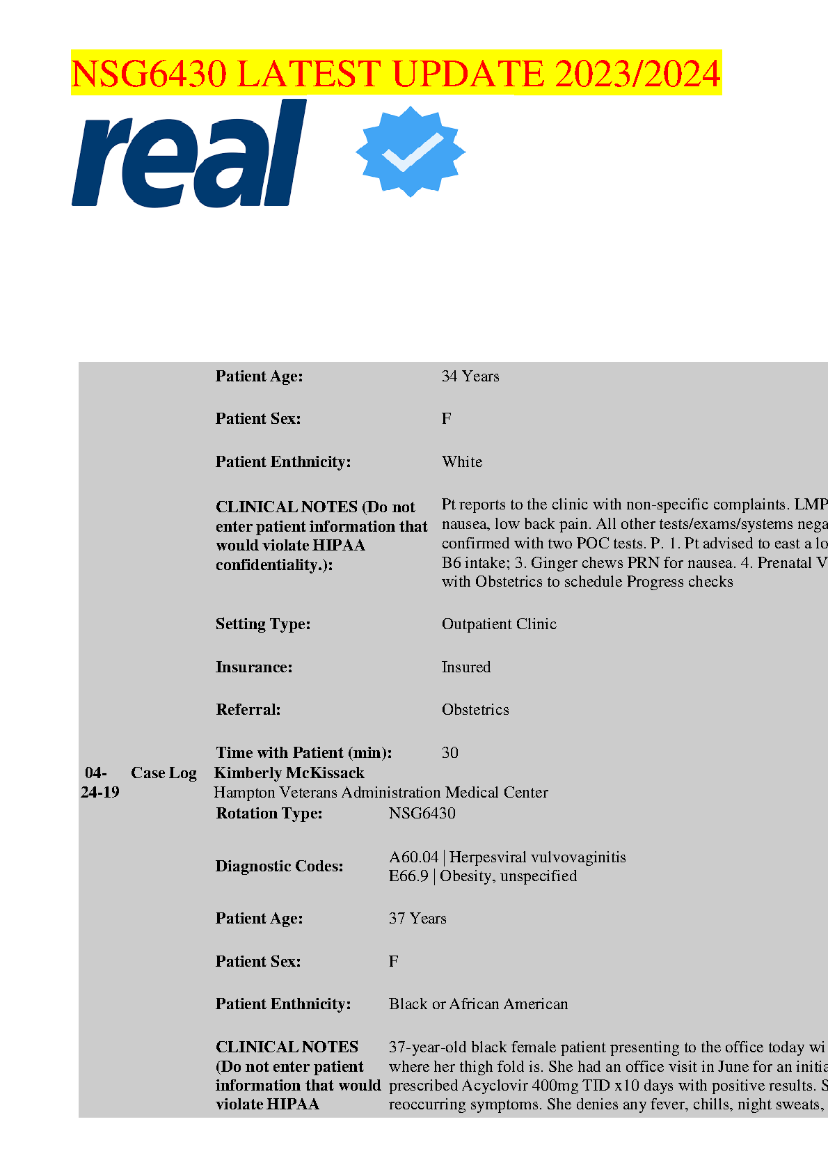 NSG6430 Latest Update 2023/2024: Ace Your Nursing Exams With Real-World Case Studies