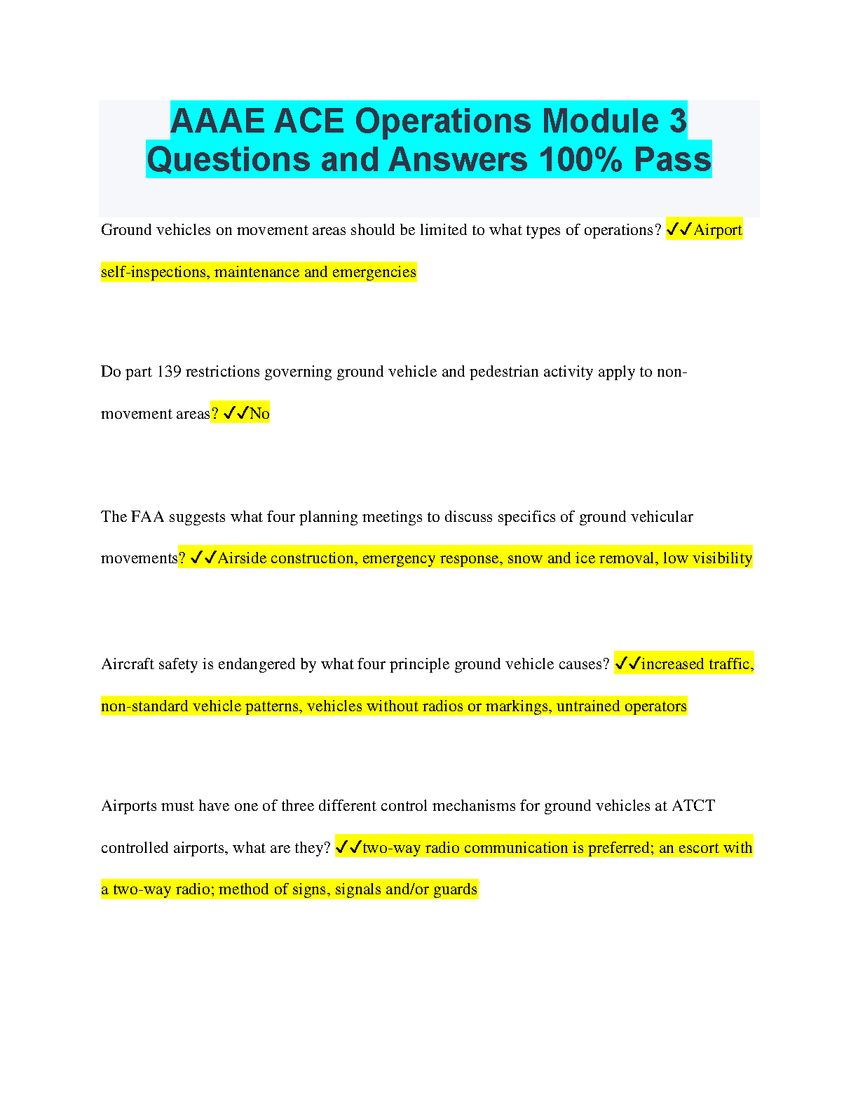 AAAE ACE Operations Module 3 Questions and Answers 100% Pass - 2024/2025 Edition