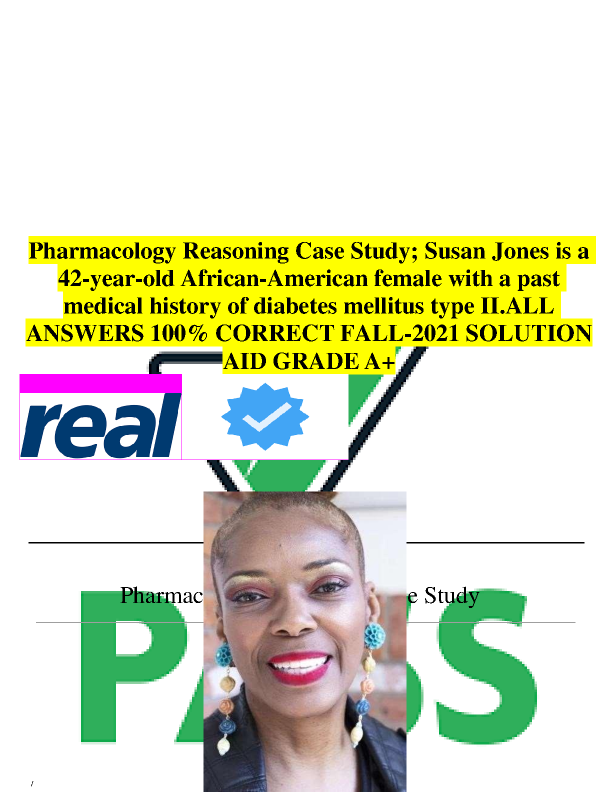 Pharmacology Reasoning Case Study: Susan Jones is a 42-year-old African-American female with a past medical history of diabetes mellitus type II. ALL ANSWERS 100% CORRECT FALL-2021 SOLUTION AID GRADE A+