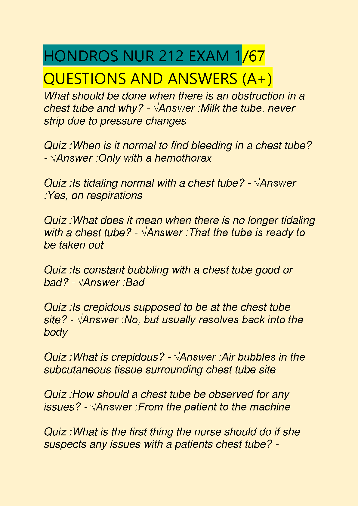 Ace your Hondros NUR 212 exam with this comprehensive study guide packed with exam-style questions and answers. This 2024/2025 edition is designed to help you master the key concepts and pass your exam on the first try.
