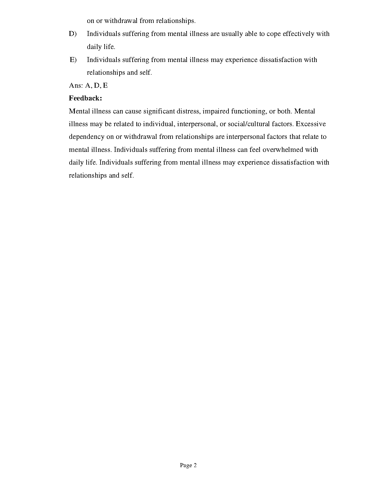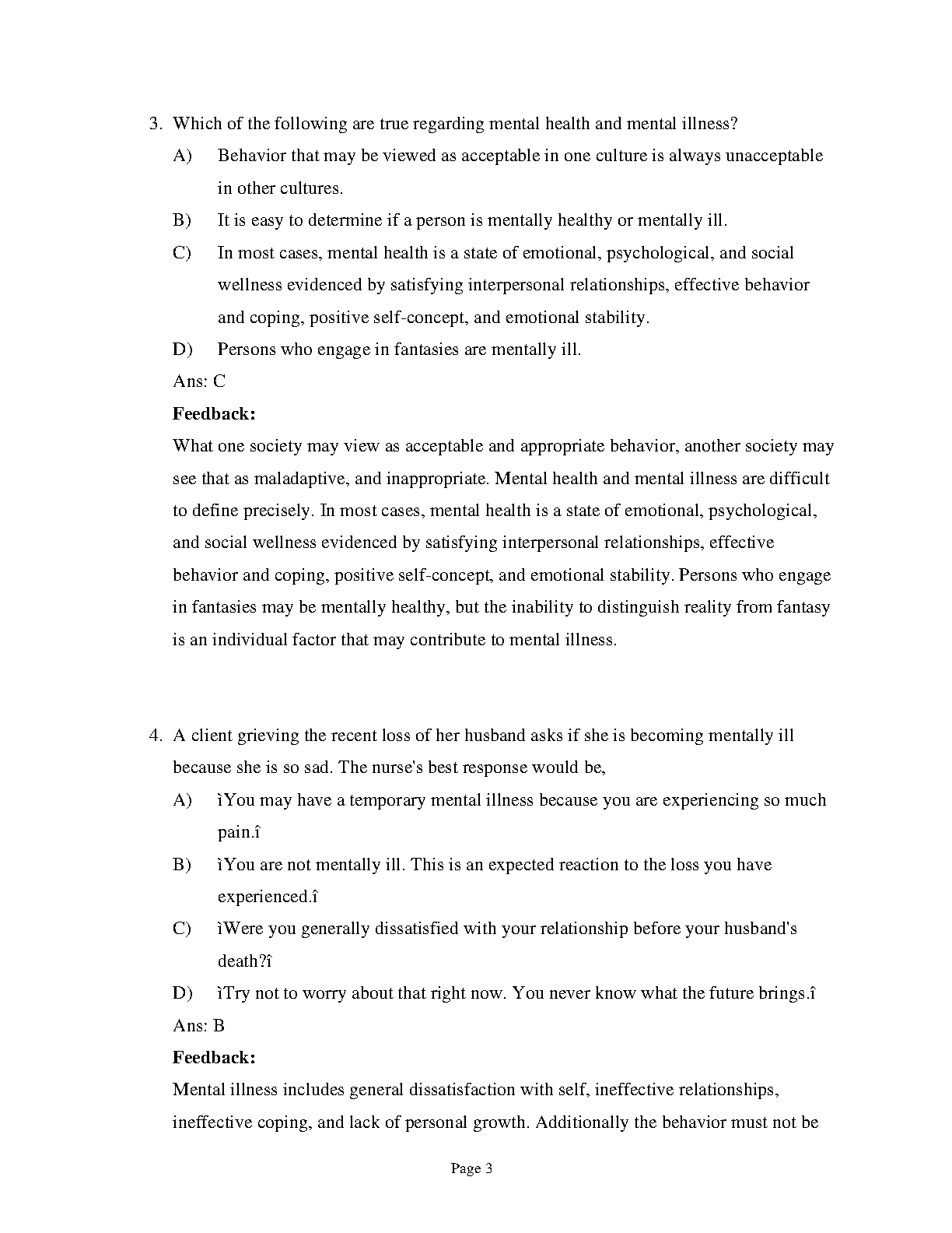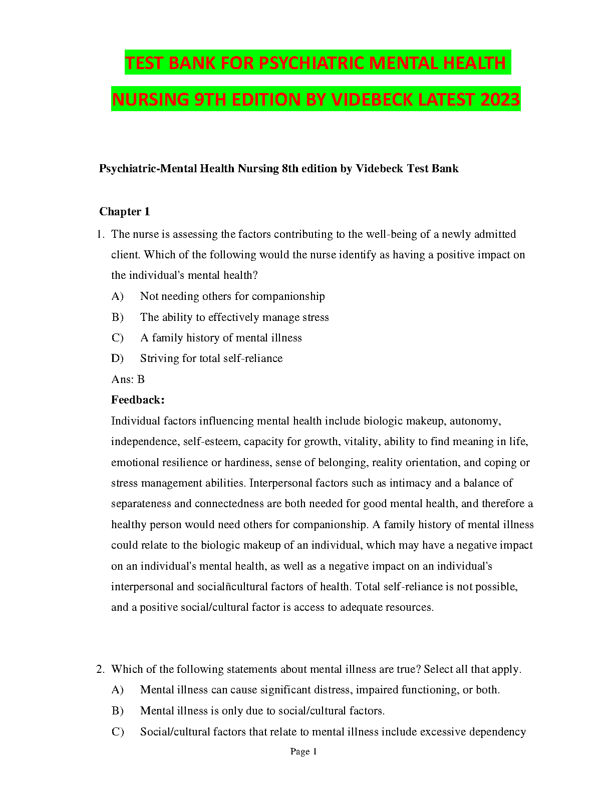 Psychiatric-Mental Health Nursing 8th Edition by Videbeck Test Bank