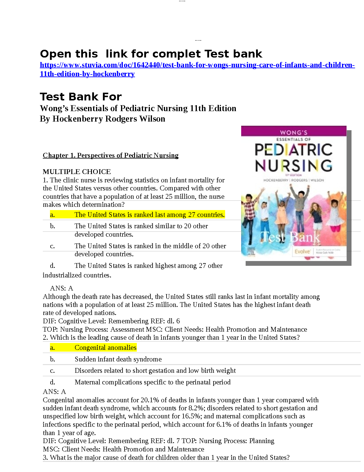 Wong's Essentials of Pediatric Nursing 11th Edition Test Bank by Hockenberry, Rodgers, Wilson