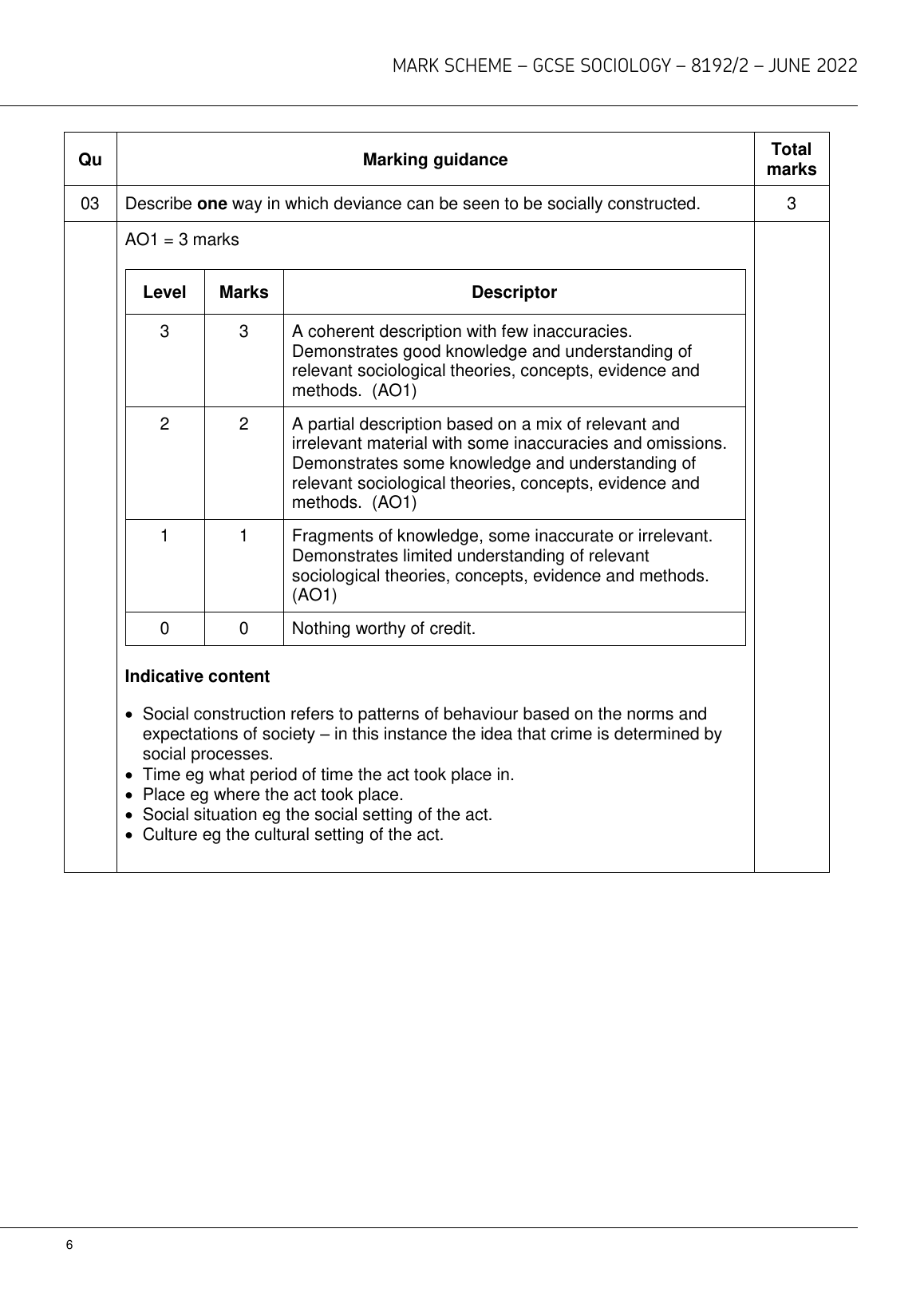 AQA GCSE SOCIOLOGY PAPER 2 JUNE 2022 MARK SCHEME (8192/2: The Sociology of Crime and Deviance and Social Stratification)