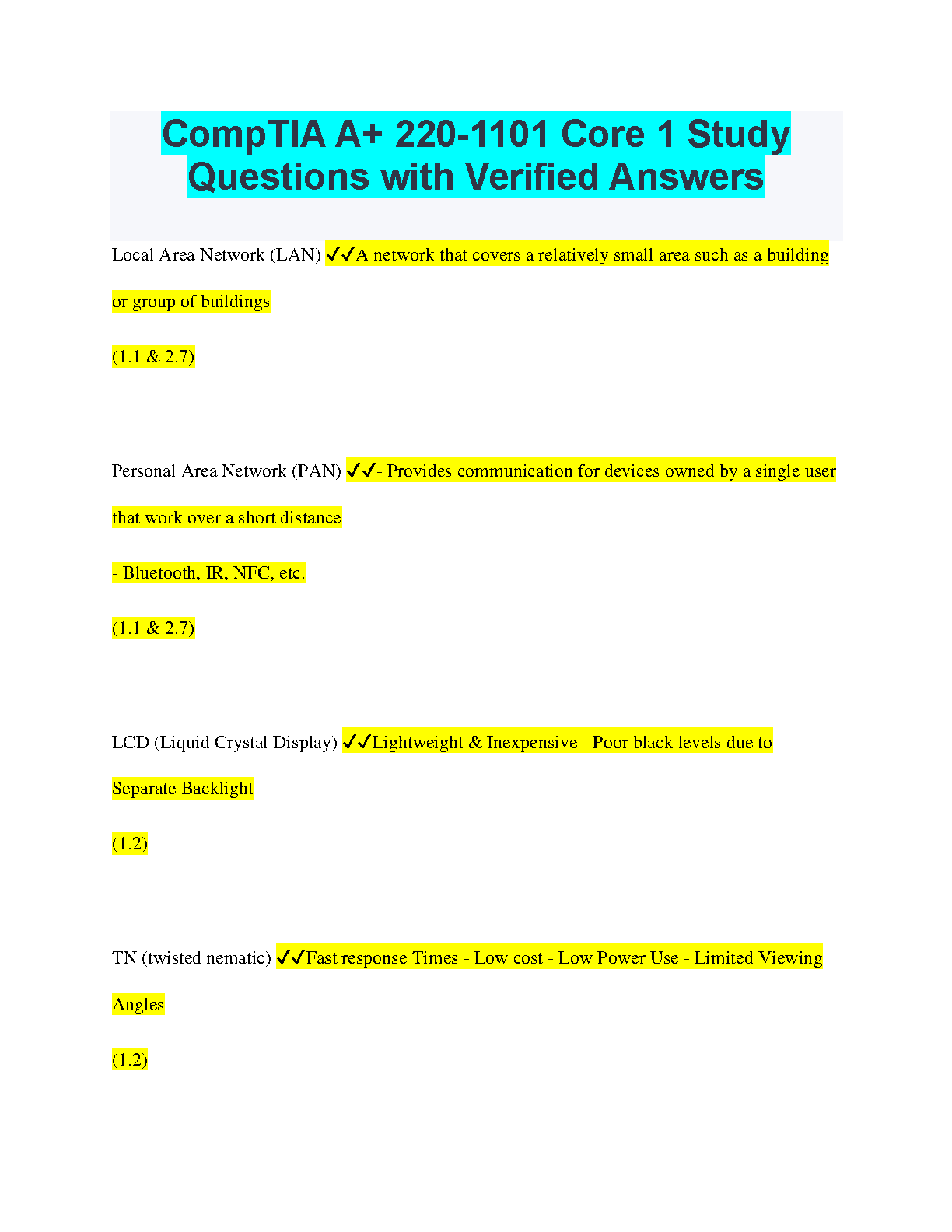 CompTIA A+ 220-1101 Core 1 Study Guide with Verified Answers - Pass Your Exam on the First Attempt