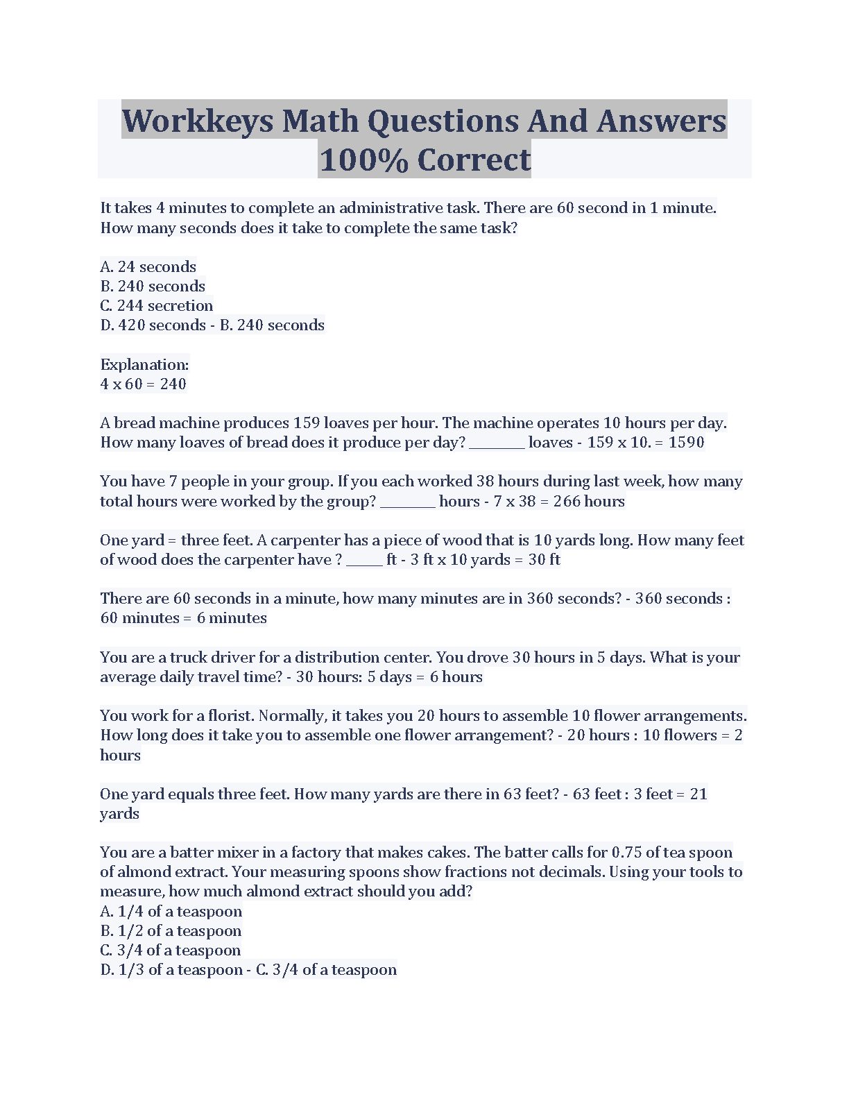 Workkeys Math Questions And Answers 100% Correct - Pass Your Exam On The First Attempt