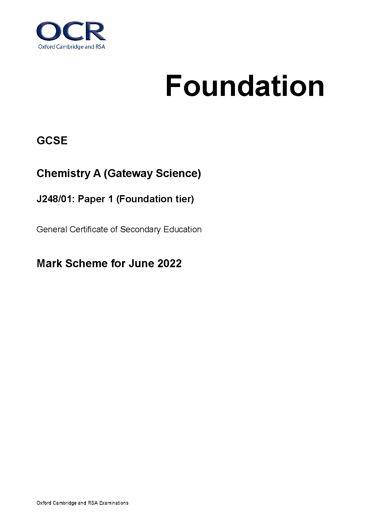 OCR GCSE Chemistry A (Gateway Science) June 2022 Foundation Tier J248/01 Paper 1 Mark Scheme - Ace Your Exams!