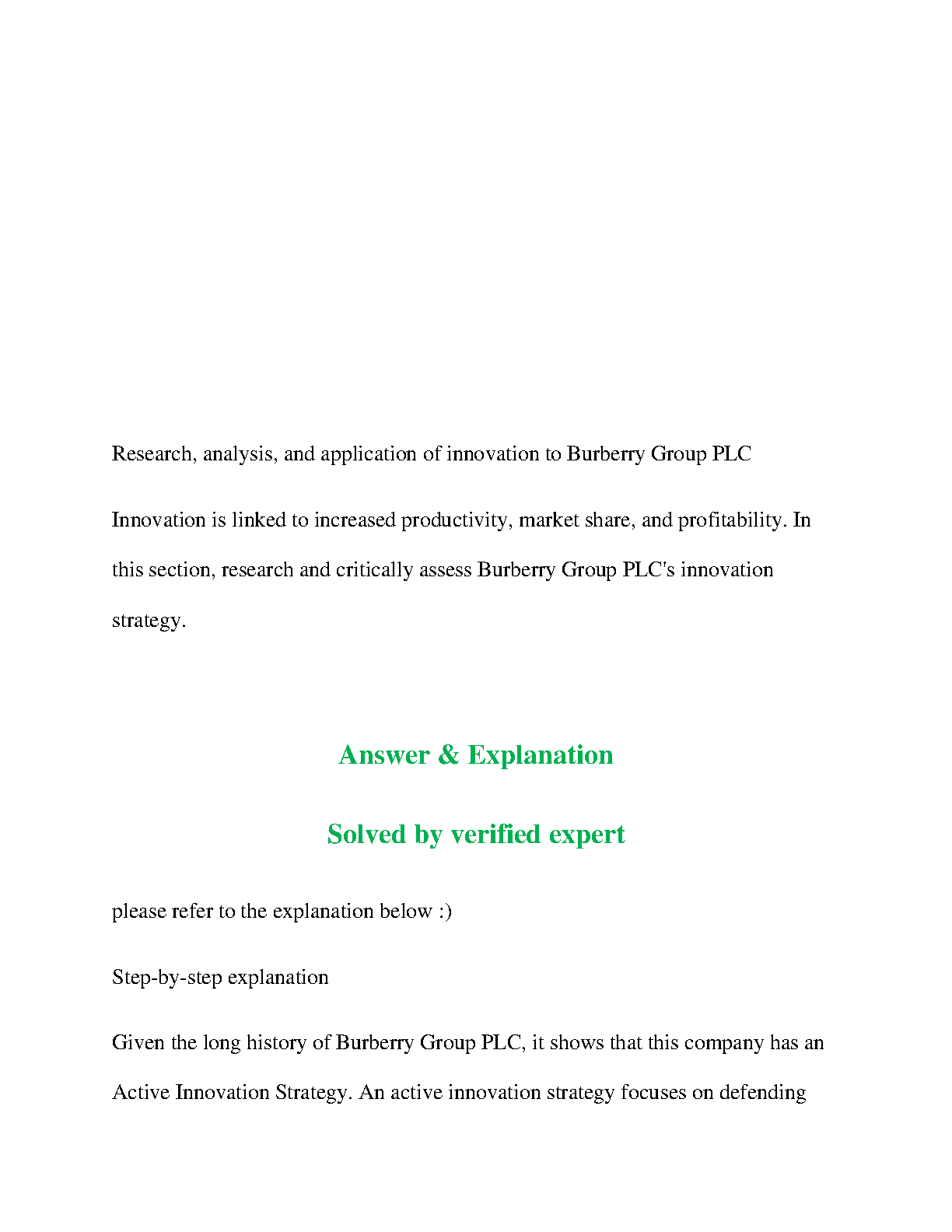 Burberry Group PLC's Innovation Strategy: A Critical Analysis and Assessment