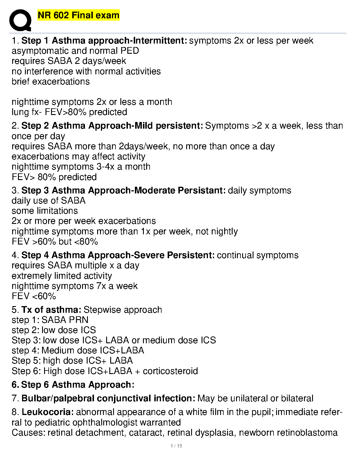 NR 602 Final Exam Study Guide: Mastering Asthma Management for 2024/2025 Academic Year