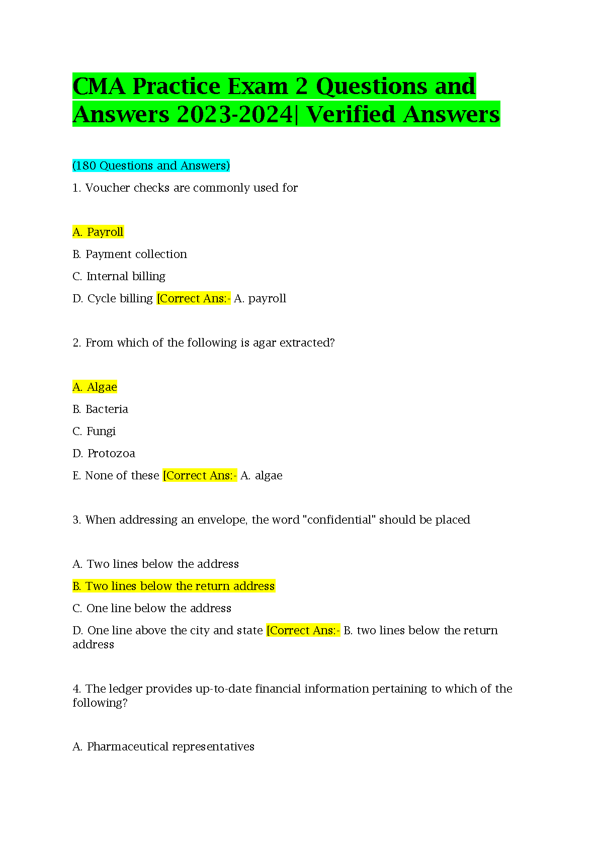 CMA Practice Exam 2 Questions and Answers 2023-2024 - Verified Answers by [Author's Name]