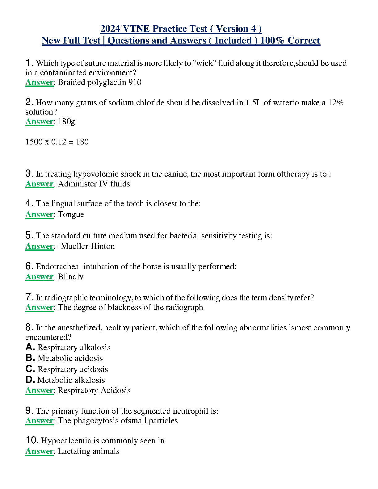 2024 VTNE Practice Test (Version 4) by Authors of VTNE Exam - New Full Test [Questions and Answers] (Included) 100% Correct