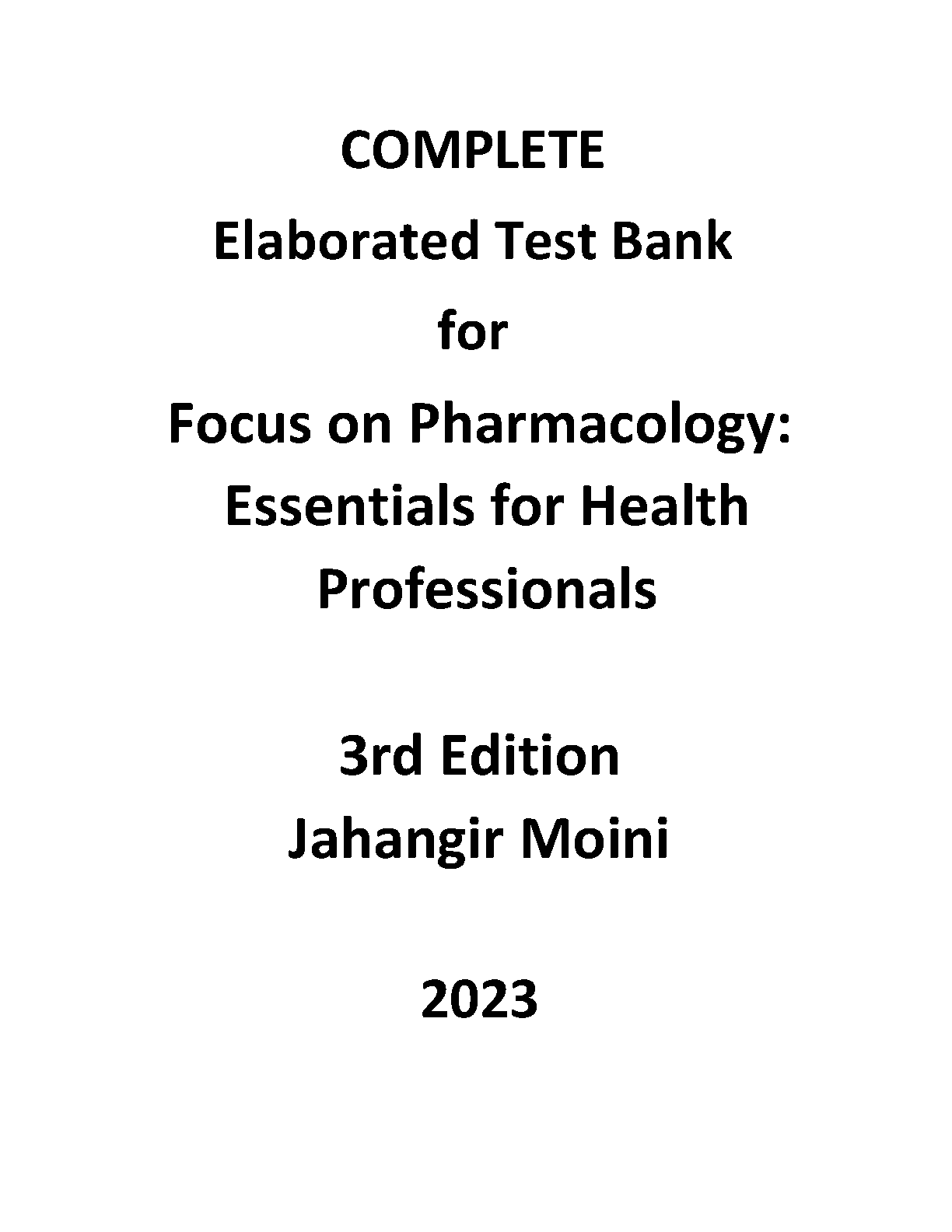 Focus on Pharmacology 3rd Edition Test Bank by Jahangir Moini - Ace Your Exams with Confidence!