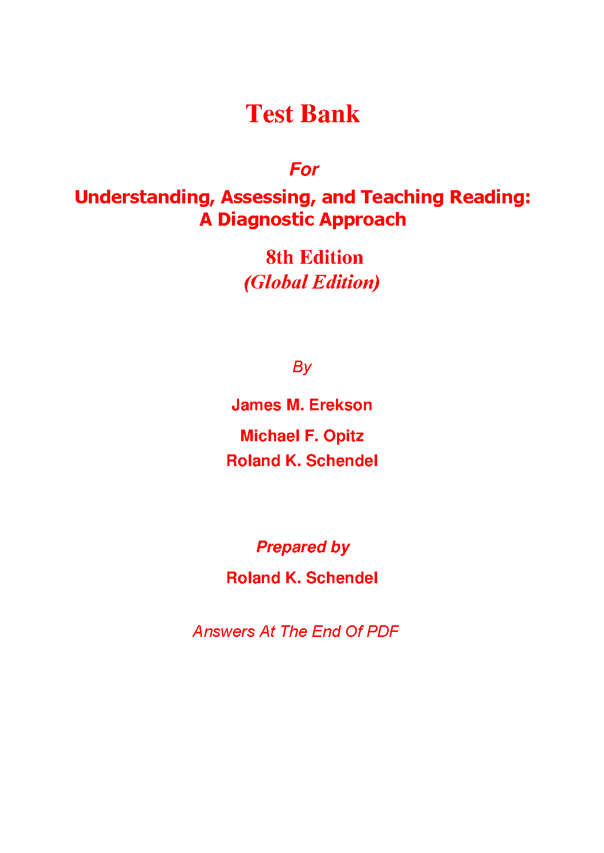 Test Bank for Understanding, Assessing, and Teaching Reading: A Diagnostic Approach 8th Edition by James M. Erekson, Michael F. Opitz, and Roland K. Schendel