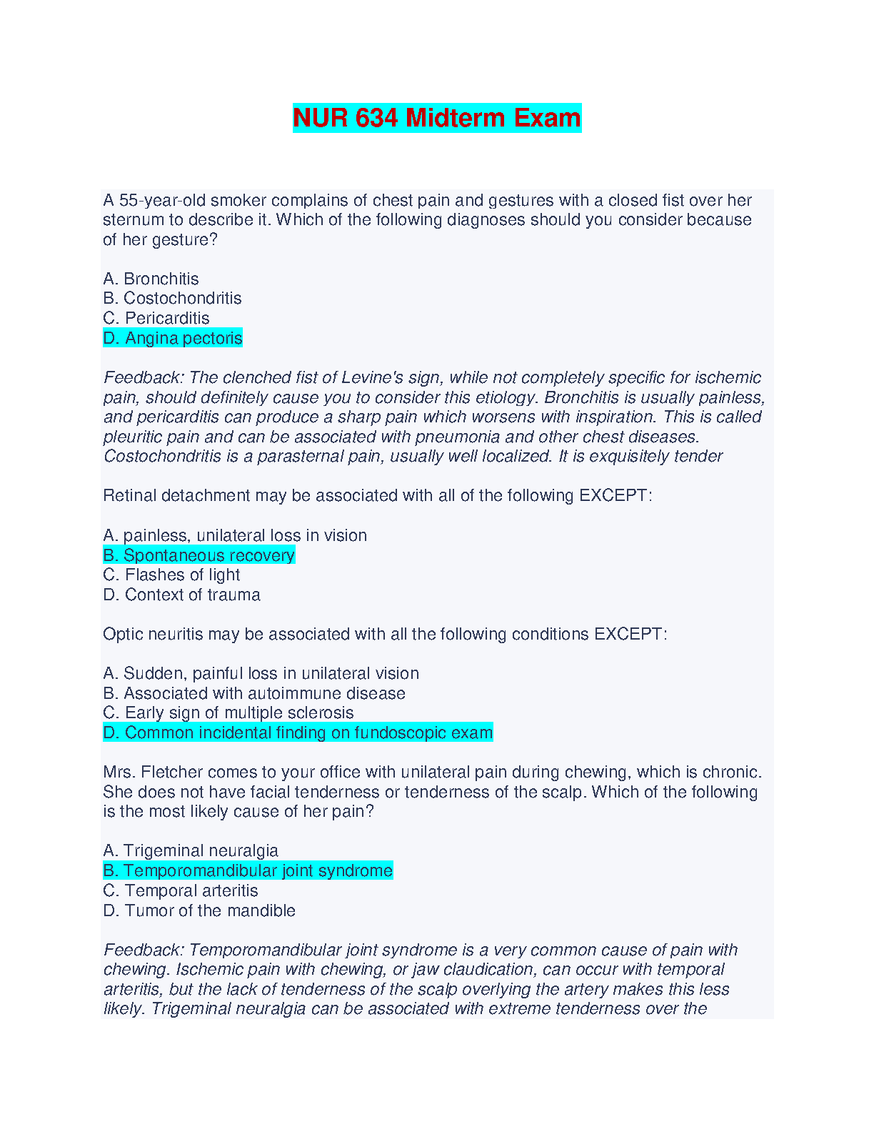 NUR 634 Midterm Exam Study Guide: A Complete Guide to Passing with Confidence