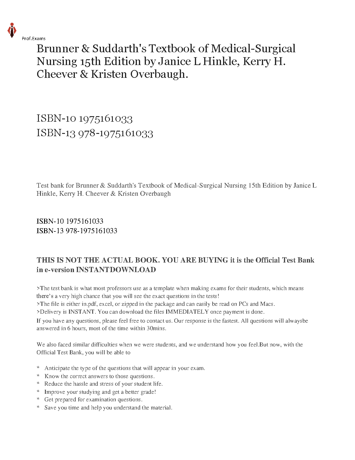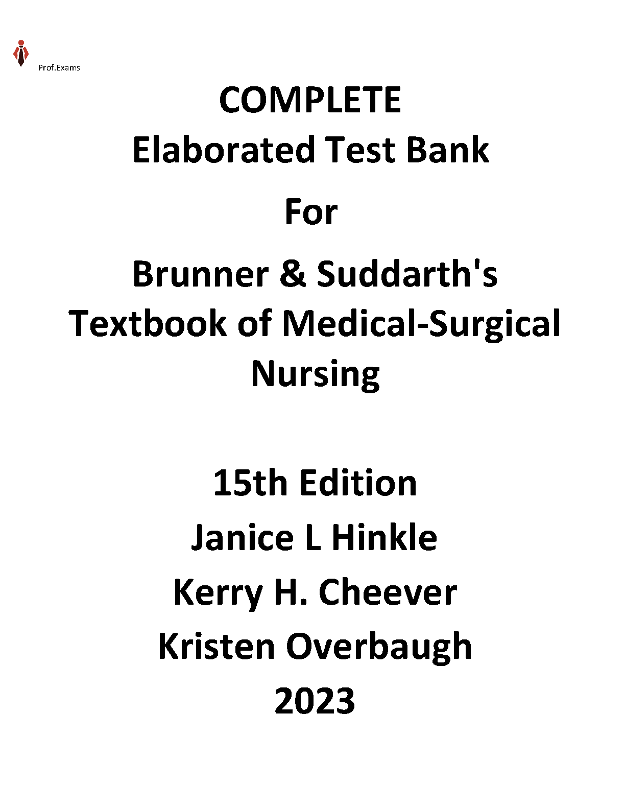 Brunner & Suddarth's Textbook of Medical-Surgical Nursing 15th Edition Test Bank by Janice L. Hinkle, Kerry H. Cheever, Kristen Overbaugh