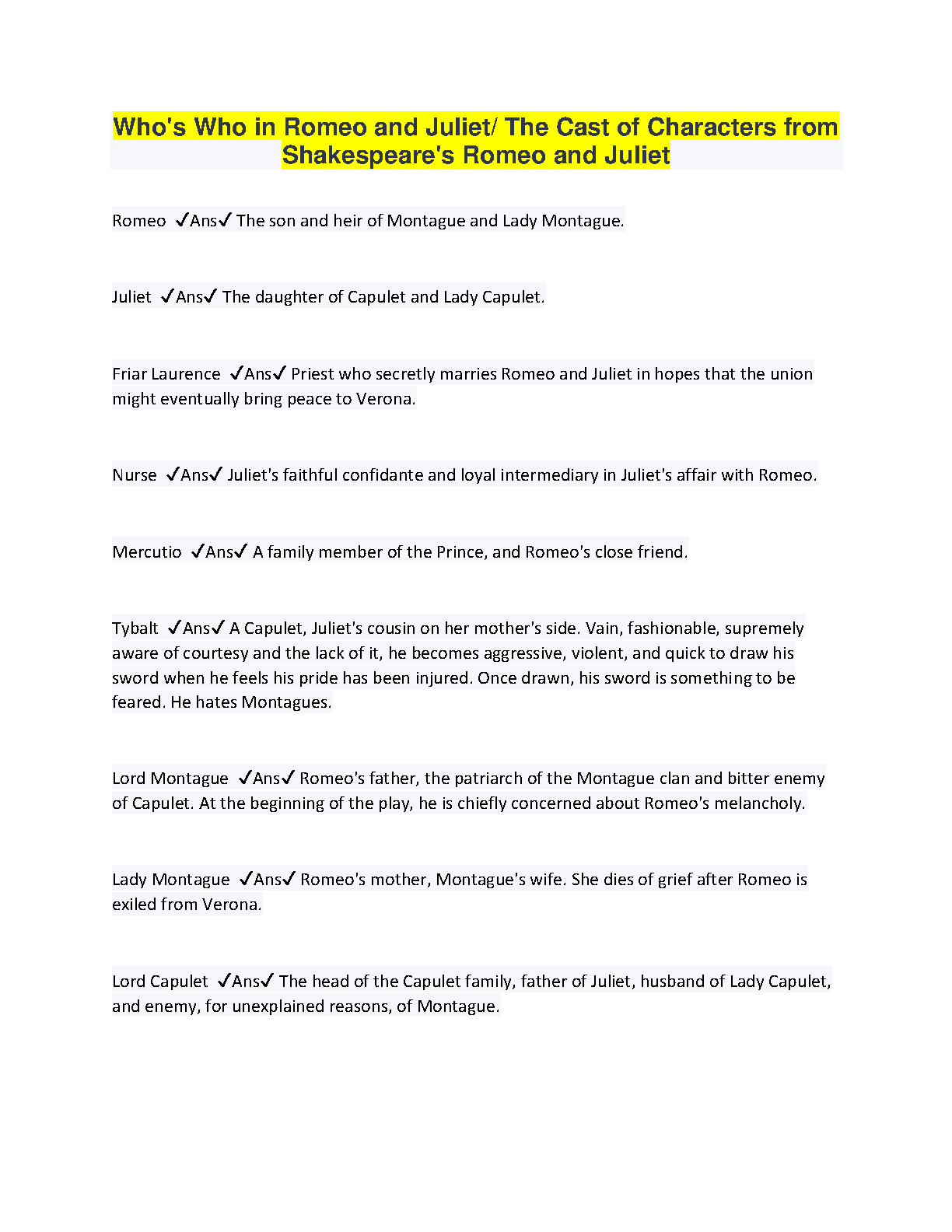 This study guide provides a concise overview of the characters in William Shakespeare's Romeo and Juliet. Get an in-depth understanding of each character's role and significance to the plot.