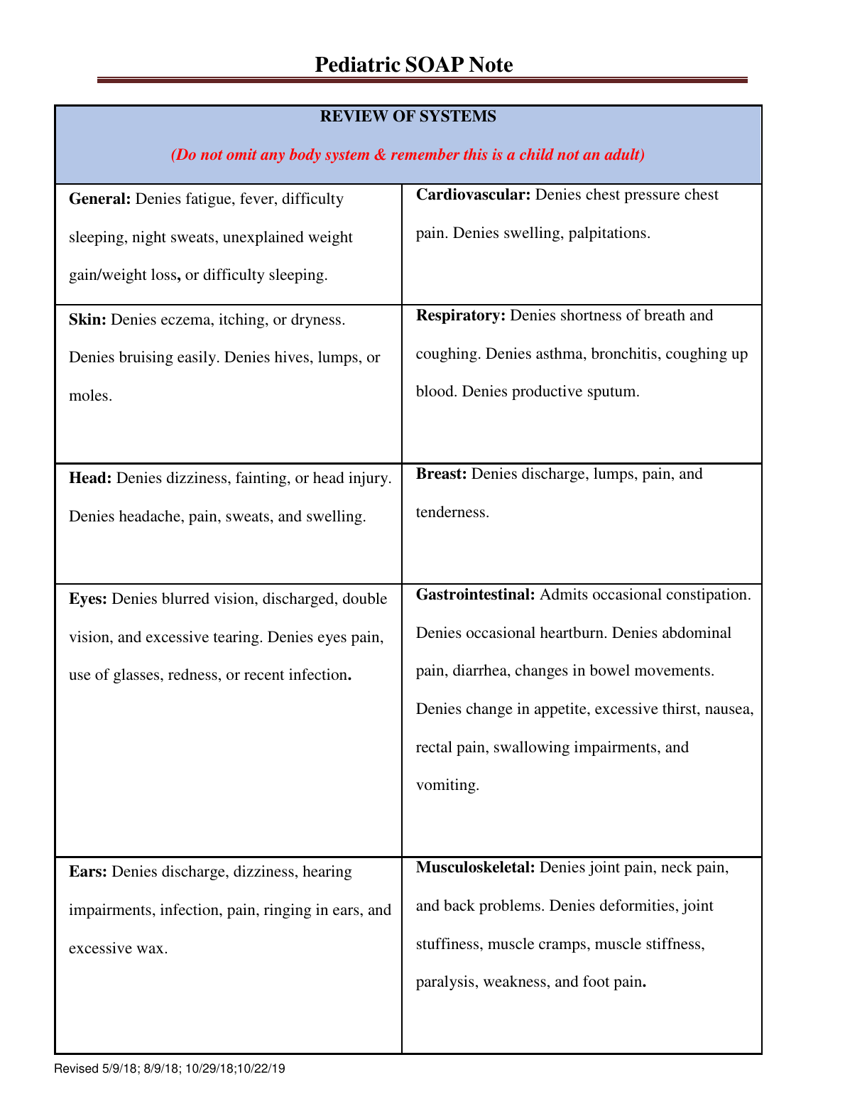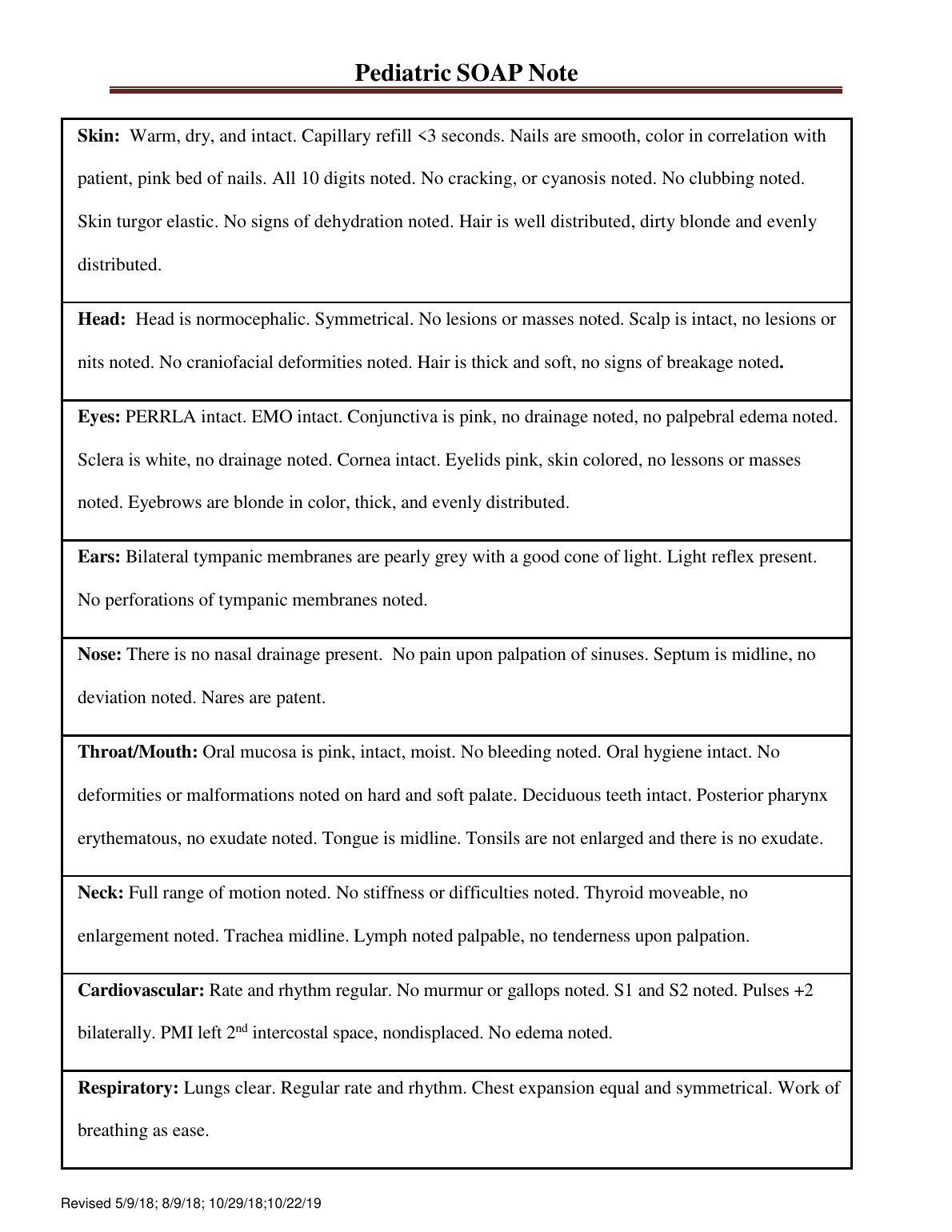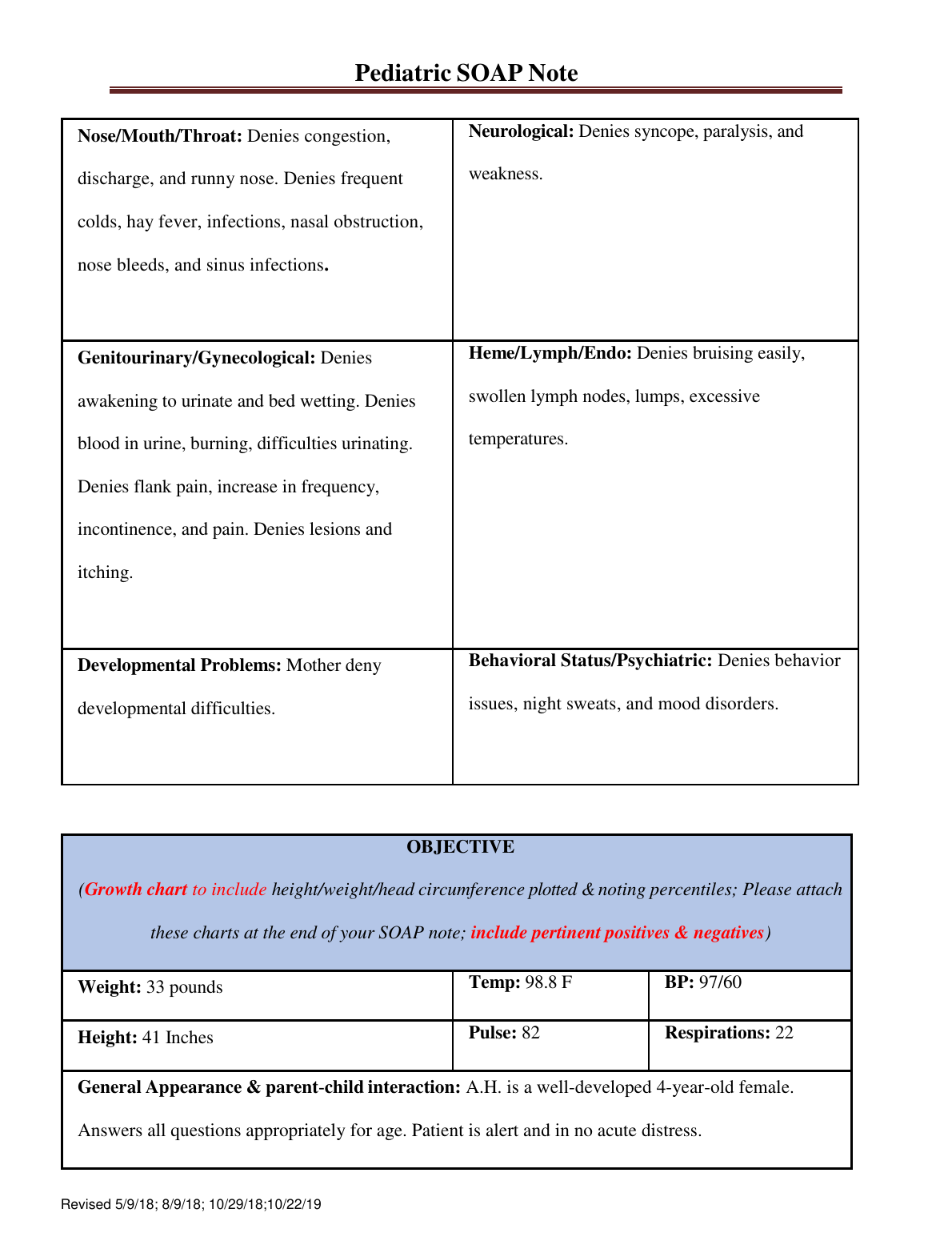 Pediatric SOAP Note - SOUTH UNIVERSITY SAVANNAH 2023
