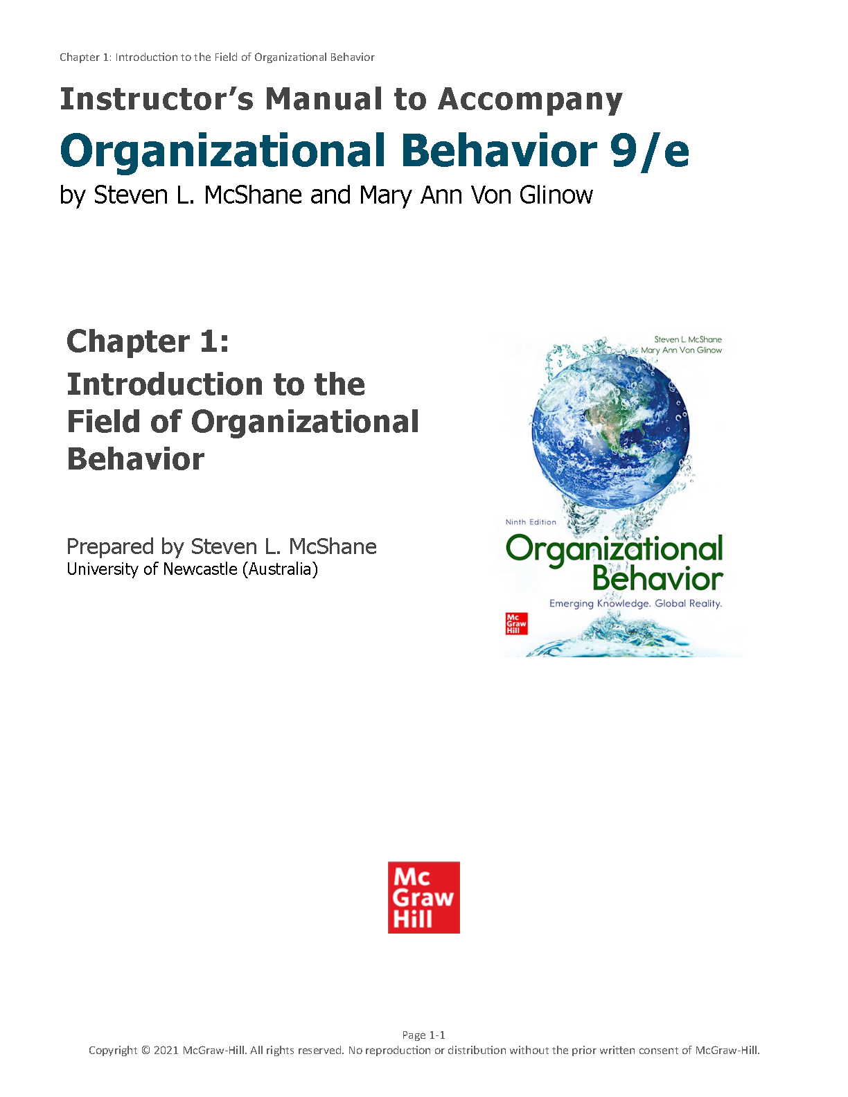 Ace your Organizational Behavior course with this comprehensive Instructor's Manual, designed to accompany the 9th Edition of Organizational Behavior by Steven L. McShane and Mary Ann Von Glinow.